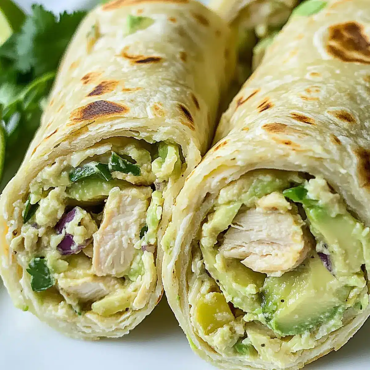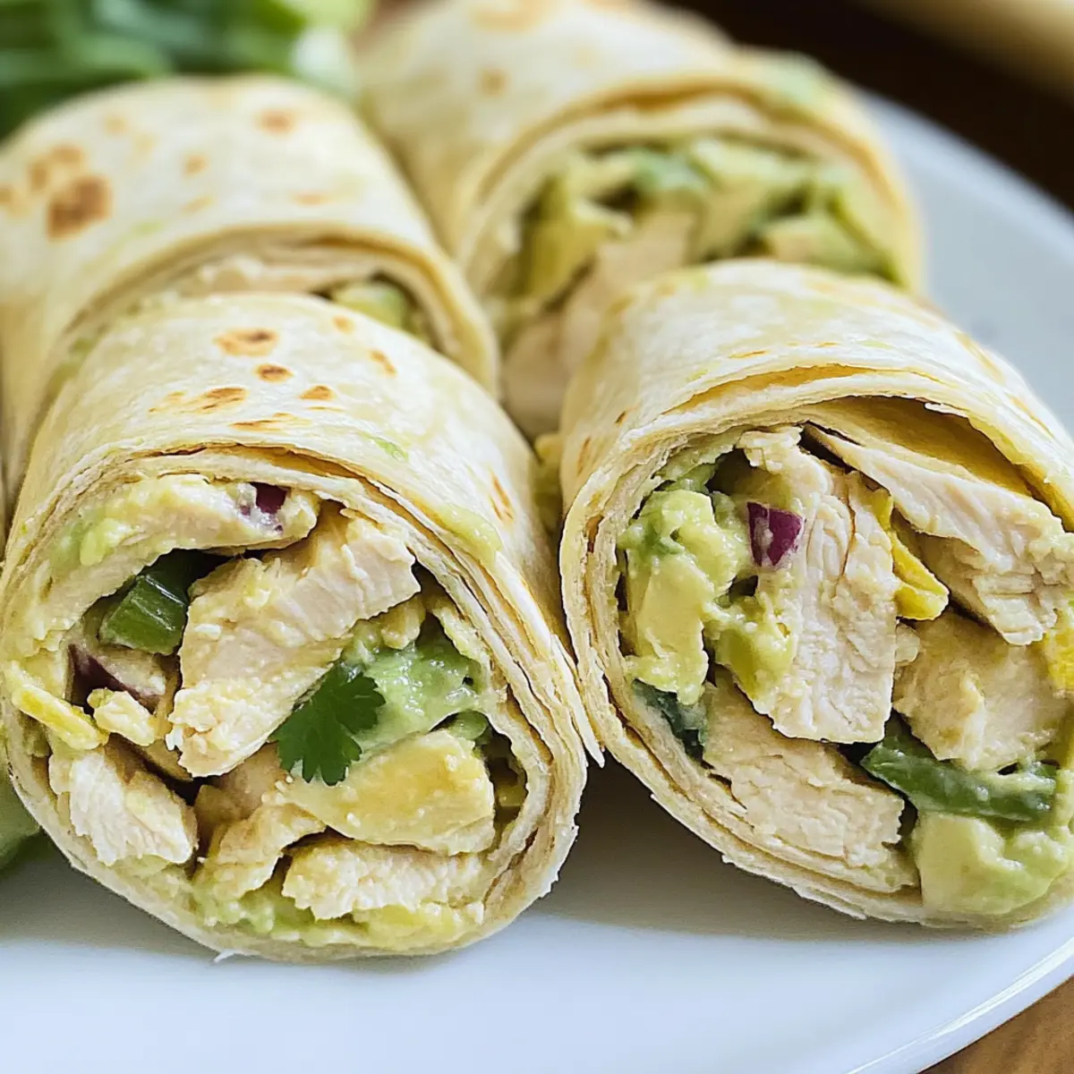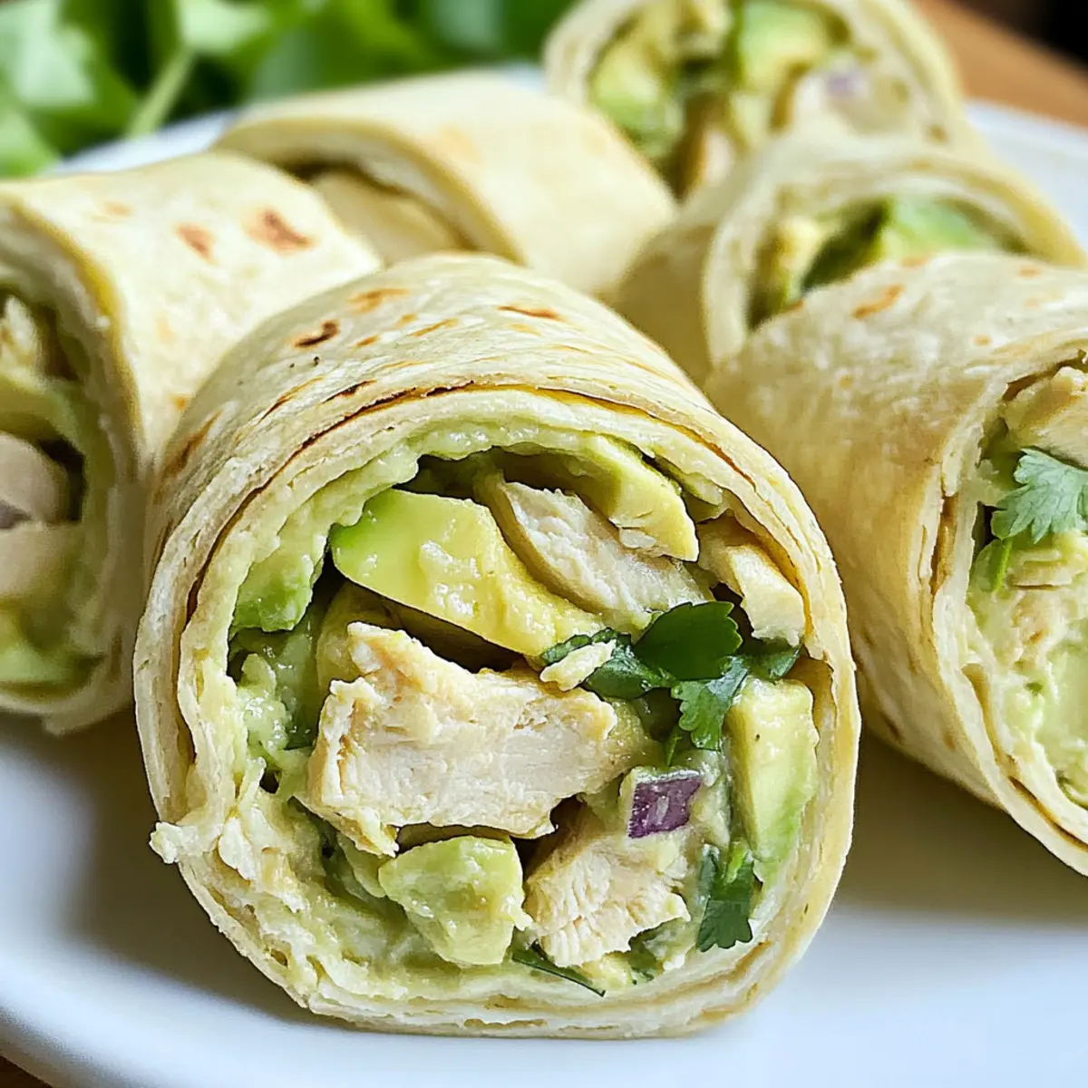 Leckere Kombination: Diese Avocado Salat Rollen vereinen frische Aromen von Limette und Kräutern mit zartem Hähnchen, was jede Biss zu einem Geschmackserlebnis macht.