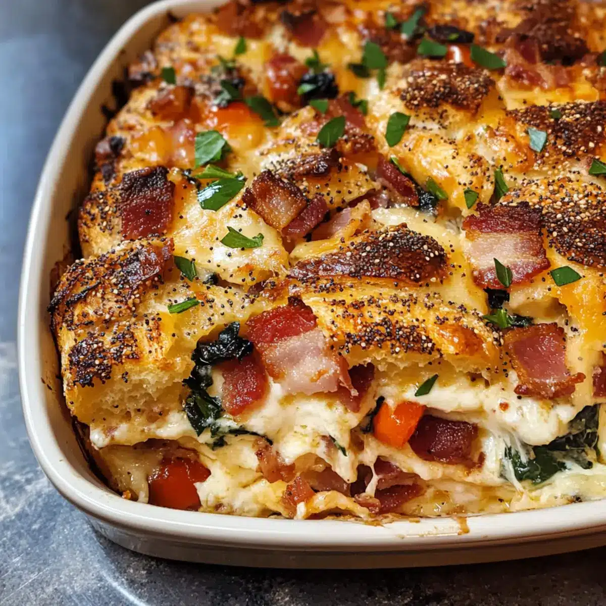 Probiere diesen Bagel-Auflauf aus und lass dich von den Aromen überraschen!