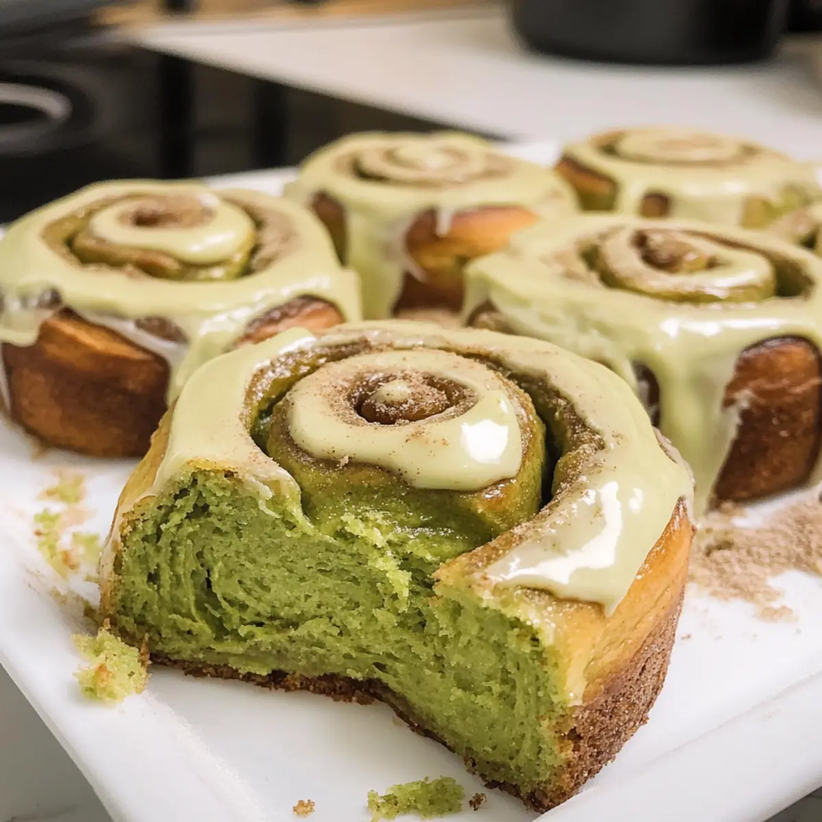 Saftige Matcha Zimtschnecken mit Frischkäseglasur