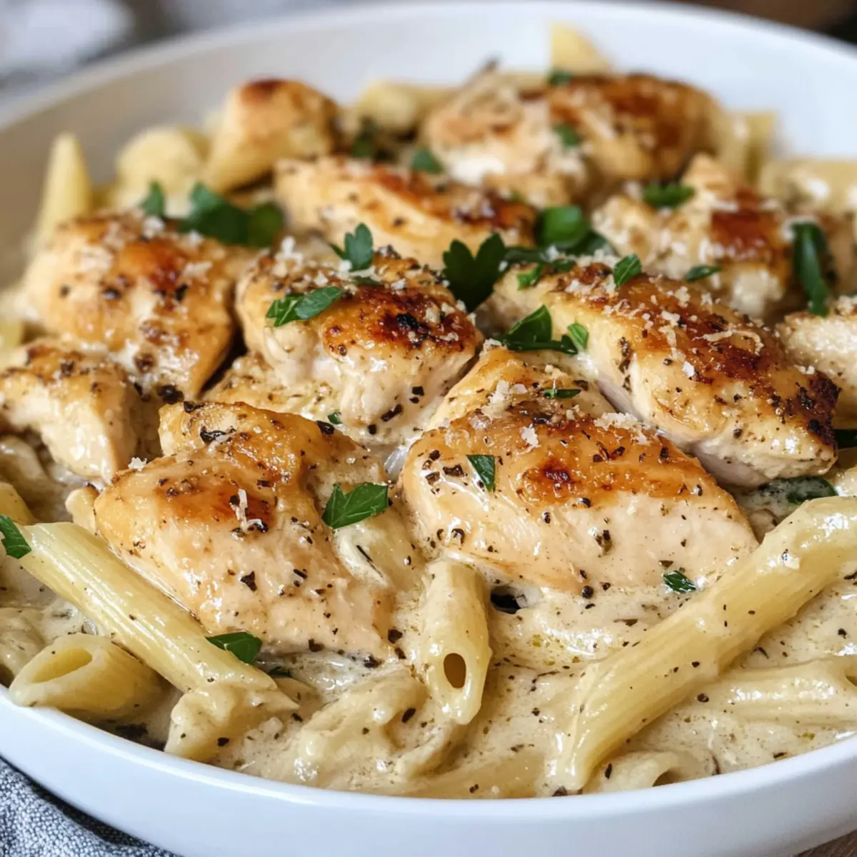 Hähnchen Knoblauch Parmesan Pasta in 30 Minuten
