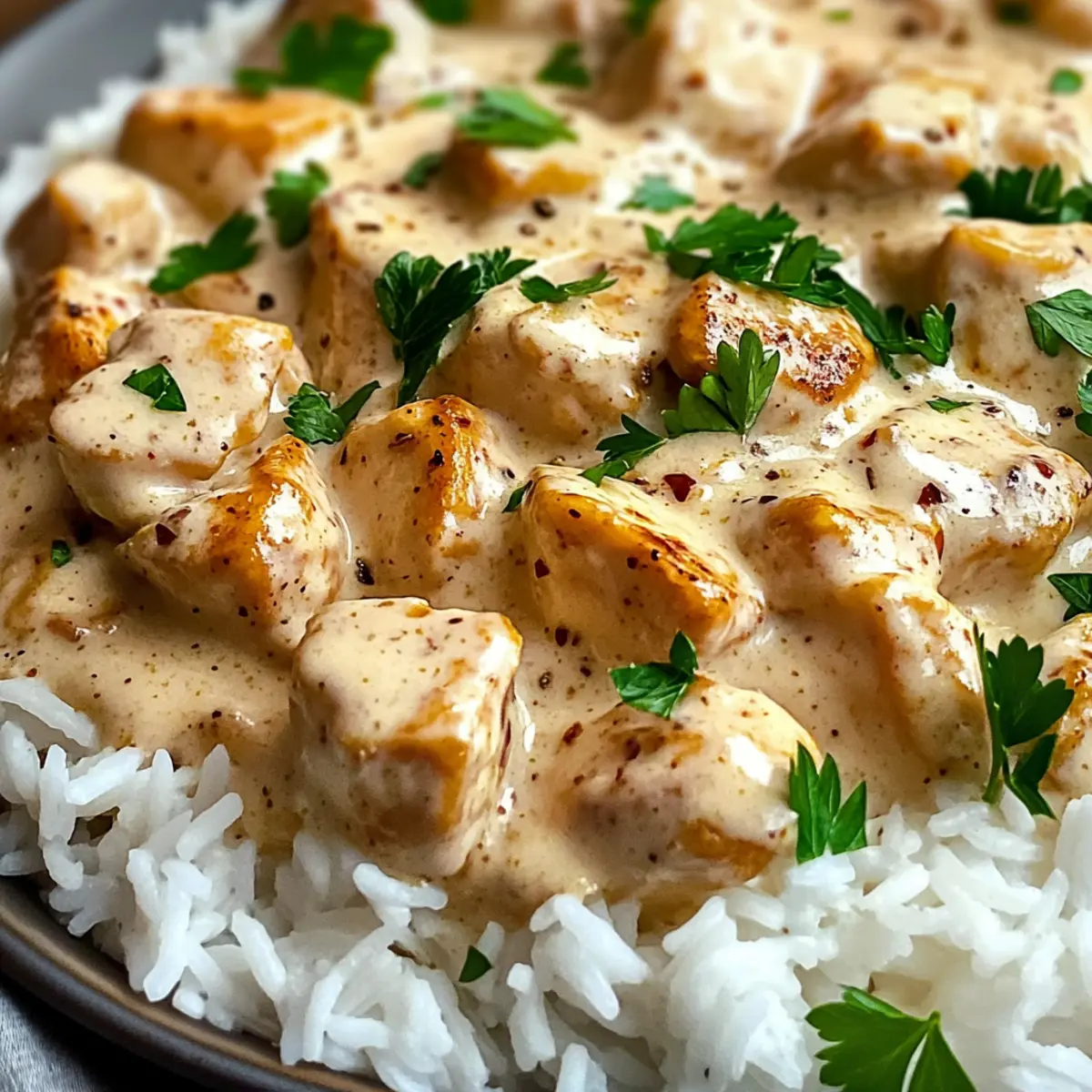 Cremiges Hähnchen mit Reis in 30 Minuten zubereiten