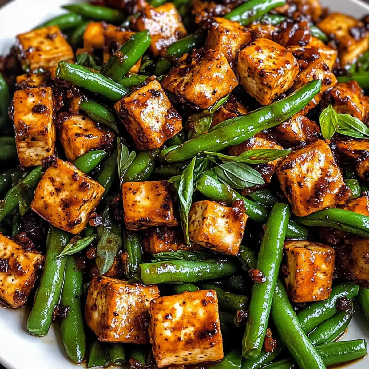 Schwarzer Pfeffer Tofu mit knackigen grünen Bohnen