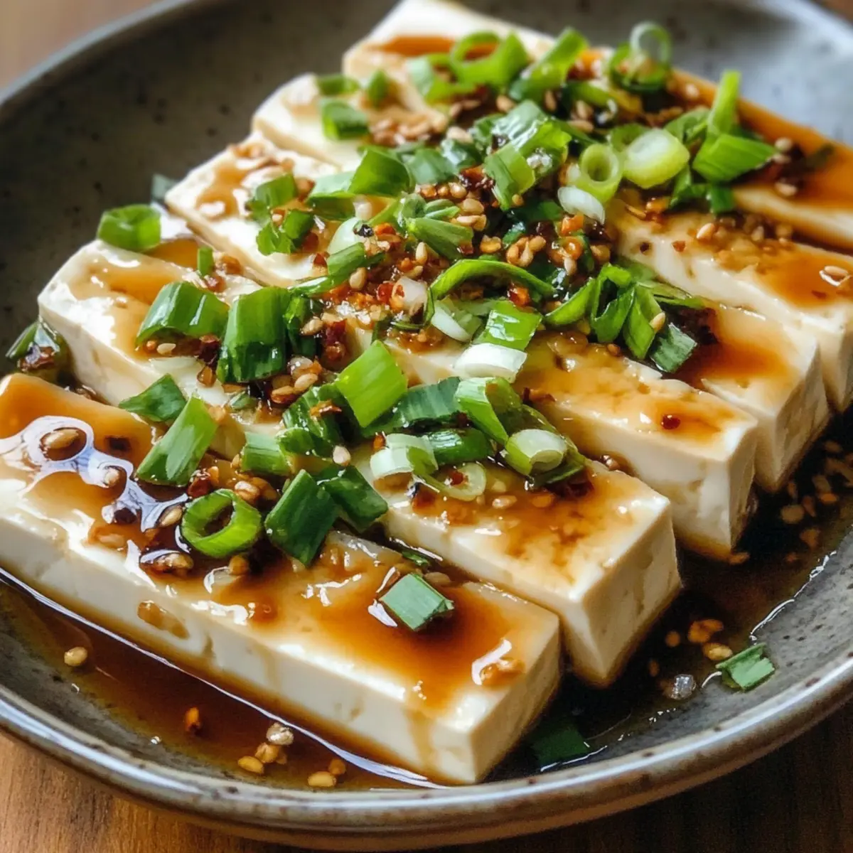Gedämpfter Tofu mit sojasoßen Knoblauchsauce