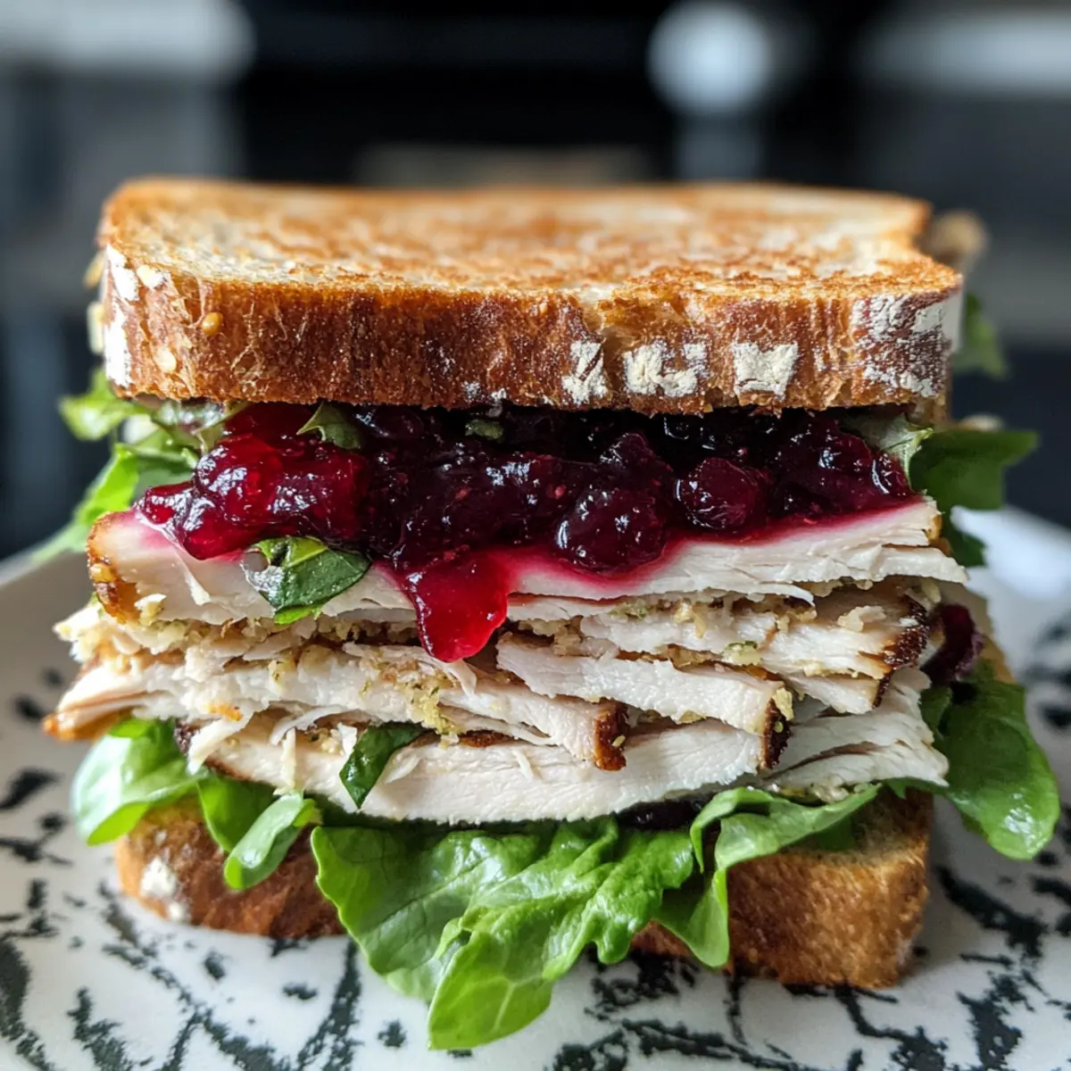 Vegetarische Option: Ersetze den Truthahn durch gebratenen Tofu oder Kichererbsen. Diese Optionen sorgen für eine leichte, aber dennoch sättigende Variante des Sandwiches.