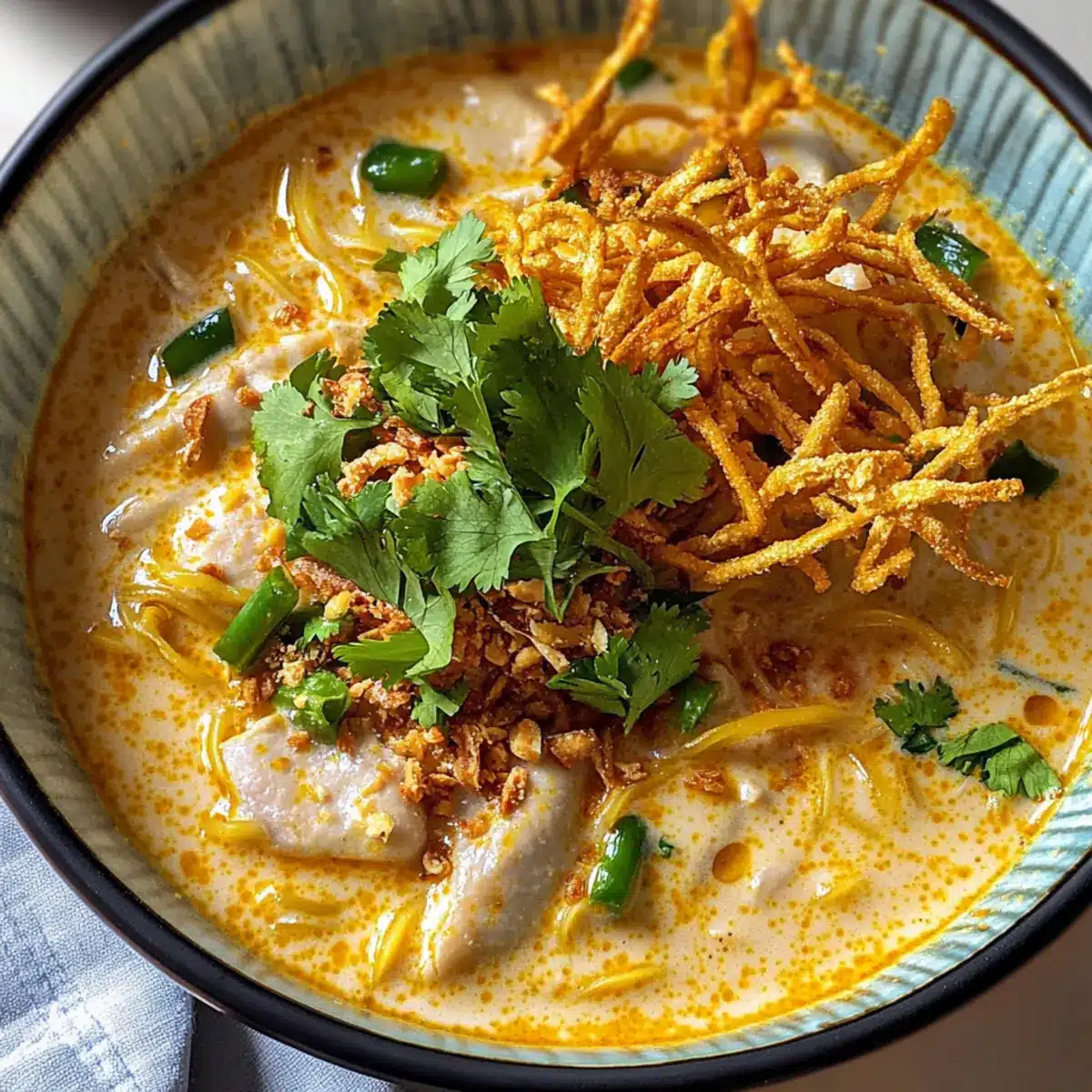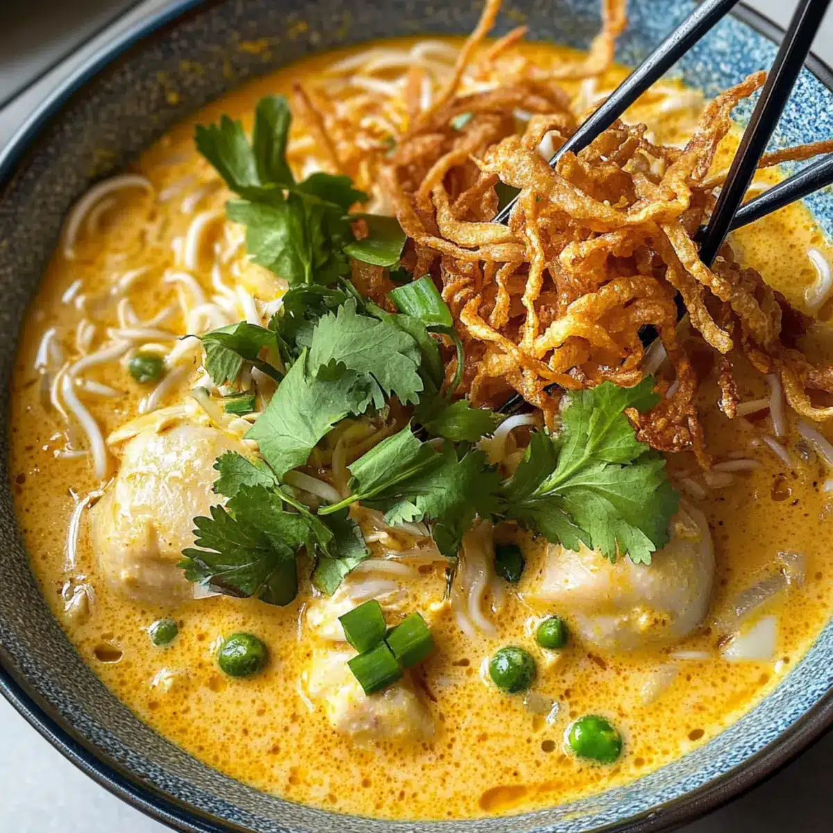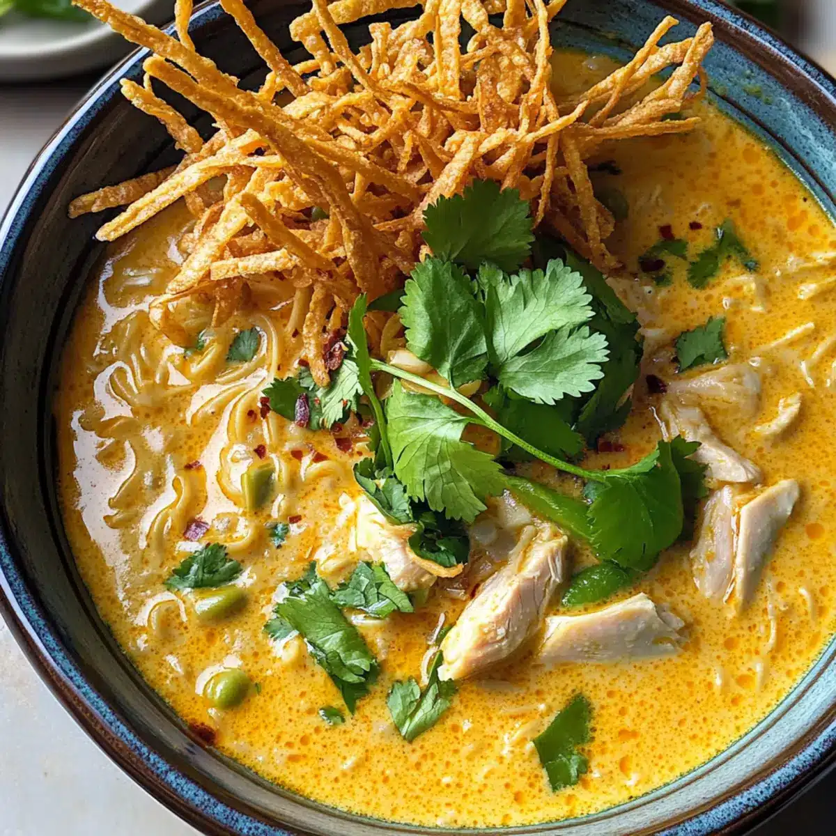 Köstliche Curry Suppe mit Kokos und Huhn
