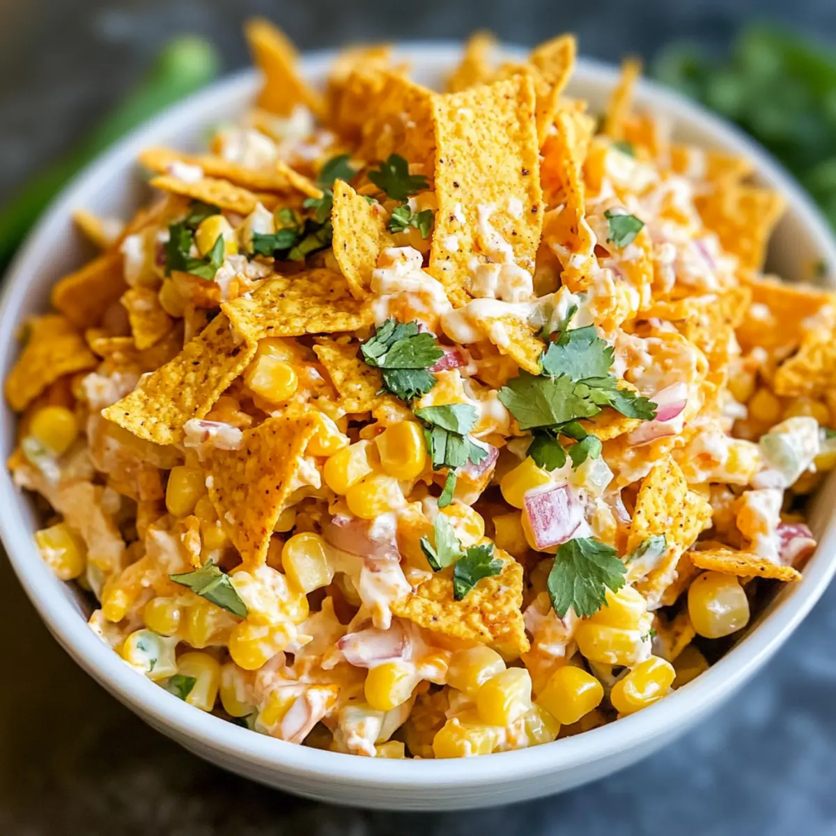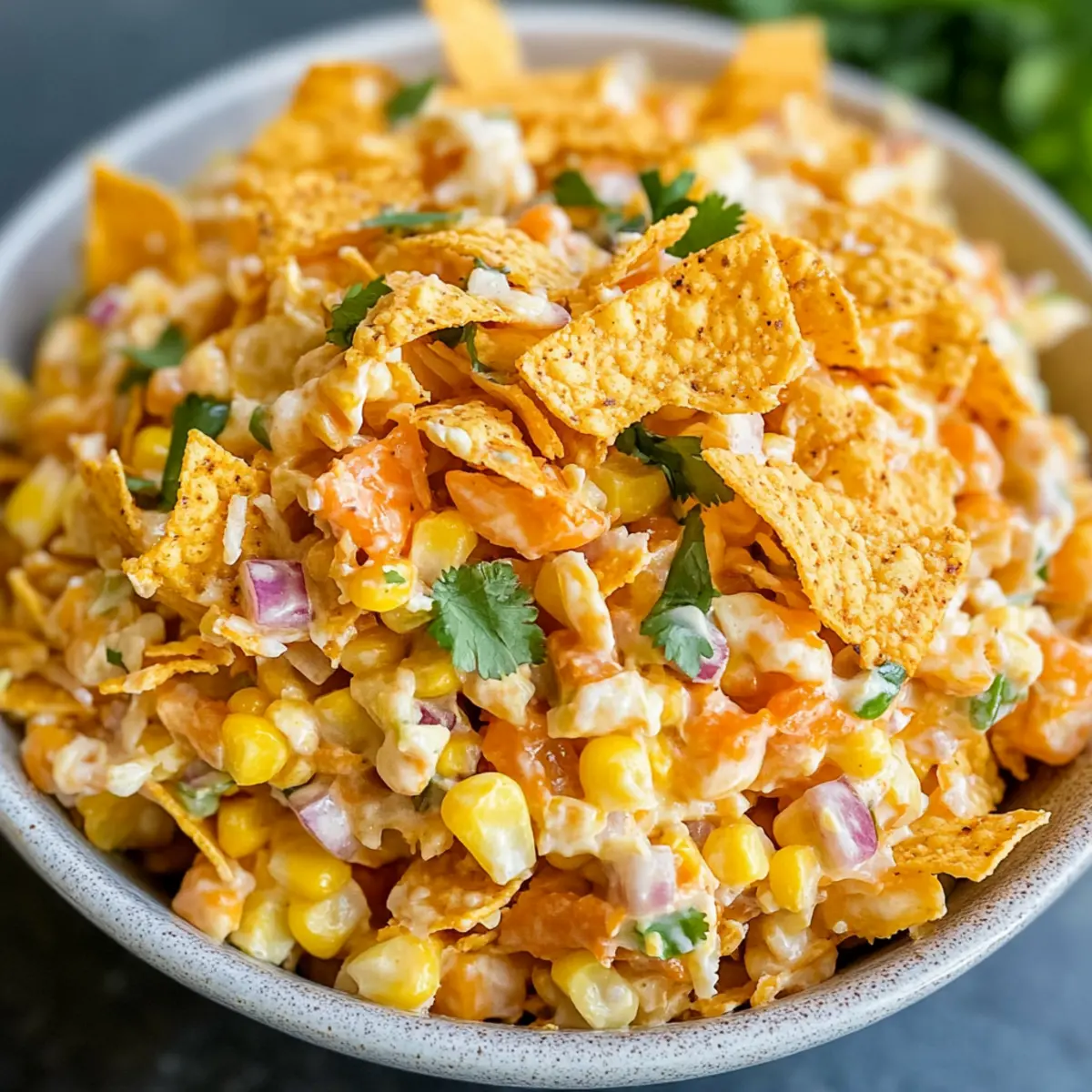 - Knusprigkeit bewahren: Füge die Chili Cheese Fritos erst kurz vor dem Servieren hinzu. So bleiben sie knusprig und verhindern, dass der Salat matschig wird.