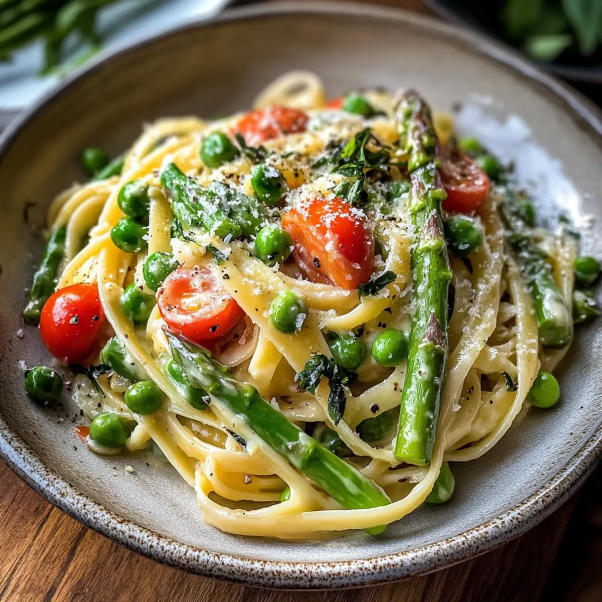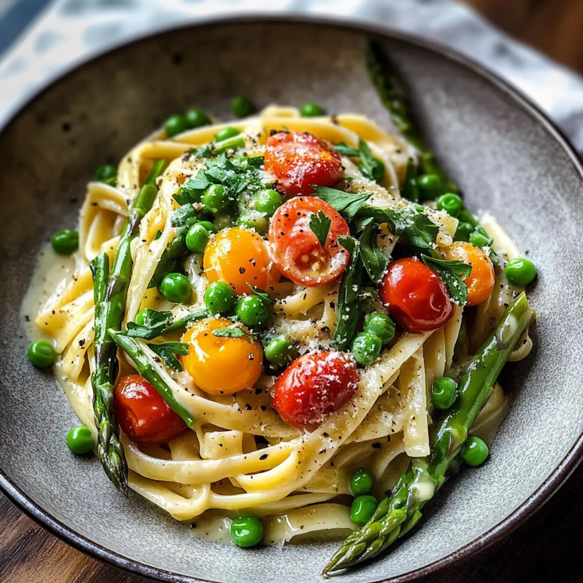 Die ersten warmen Sonnenstrahlen des Jahres erwecken meine Geschmacksknospen zum Leben und lassen mich von frisch zubereitetem Essen träumen. Diese köstliche Frühlingspasta Primavera bringt den Frühling direkt auf den Tisch – mit zarten Spargeln, süßen Erbsen und leuchtenden Kirschtomaten, die in einer cremigen Sauce umschmeichelt werden. Diese leichte, vegetarische Mahlzeit lässt sich schnell zubereiten und ist der perfekte Leckerbissen für eine gesellige Runde oder ein schnelles Abendessen nach einem langen Tag. Mit der Möglichkeit, die Zutaten nach Belieben anzupassen oder sogar eine leichteren, milchfreien Variante zu kreieren, bleibt kein Wunsch offen. Vorfreude auf ein strahlend buntes Tellerlebnis? Ich kann es kaum erwarten, dir die Details zu verraten!