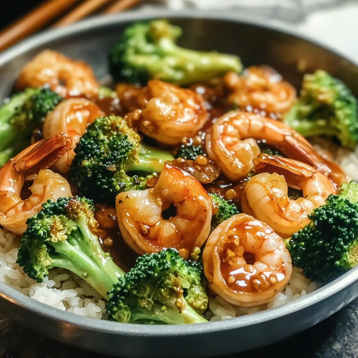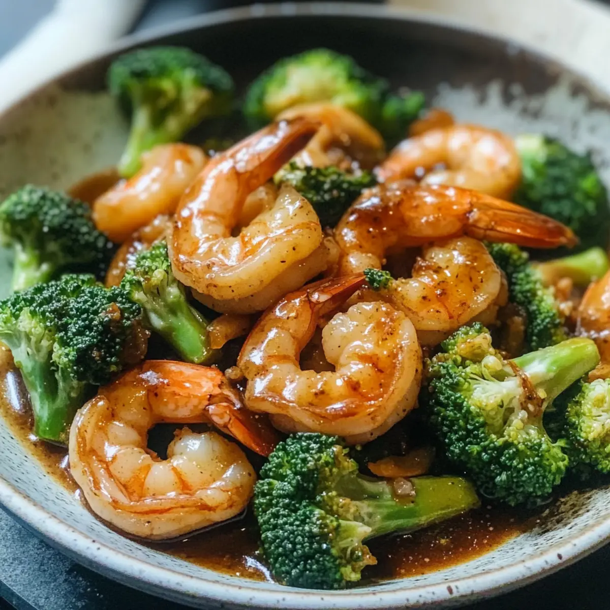 Jetzt die vorbereitete Sauce in die Pfanne zu den Garnelen geben und den vorgegarten Brokkoli hinzufügen. Alles gut umrühren und die Hitze reduzieren. Rühren, bis die Sauce anfängt, einzudicken und die Garnelen und Brokkoli gleichmäßig umhüllt sind. Serviere das Gericht heiß über frisch gekochtem Reis und genieße die Aromen der Garnelen und Brokkoli!