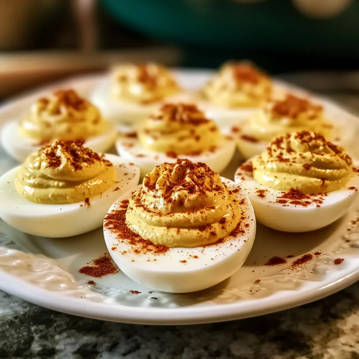 Streue zum Abschluss etwas Paprika über die gefüllten Eier, um einen festlichen Touch zu verleihen. Du kannst auch frische Kräuter wie Schnittlauch oder Petersilie hinzufügen, um Farbe und Geschmack zu verbessern. Lasse die gefüllten Eier für mindestens 30 Minuten im Kühlschrank ruhen, damit sich die Aromen entfalten können und sie kühl serviert werden.