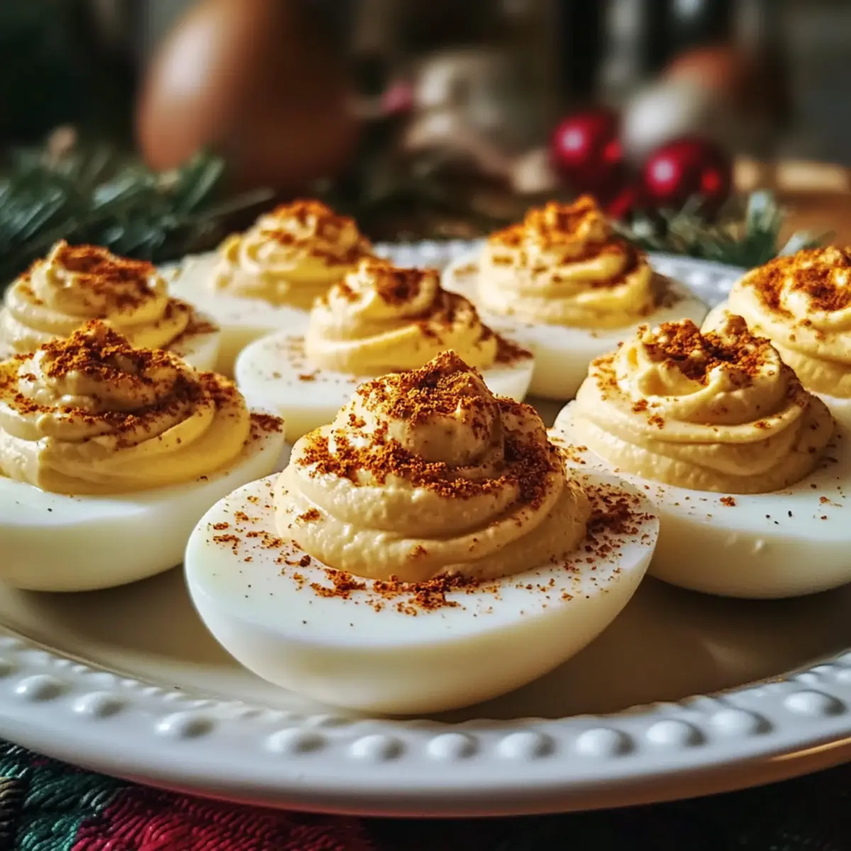 Während ich in meiner Küche stand und die festliche Stimmung auf mich wirkte, fiel mein Blick auf die Eier, die schon seit Tagen auf ihre Verwendung warteten. Diese klassischen Gefüllten Eier sind nicht nur ein Muss für jede Weihnachtsfeier, sondern auch überraschend einfach zuzubereiten! Mit einer cremigen, würzigen Füllung und einem Hauch von Paprika werden sie sowohl Gourmets als auch Casual Foodies begeistern. Die Kombination aus nostalgischem Charme und modernen Variationen – von veganen bis hin zu scharfen Varianten – macht sie zu einem Hit für jeden Gaumen. Und das Beste daran? Sie sind perfekt vorzubereiten und sorgen für einen festlichen Akzent auf jedem Tisch. Welche unwiderstehliche Variante wirst du ausprobieren?