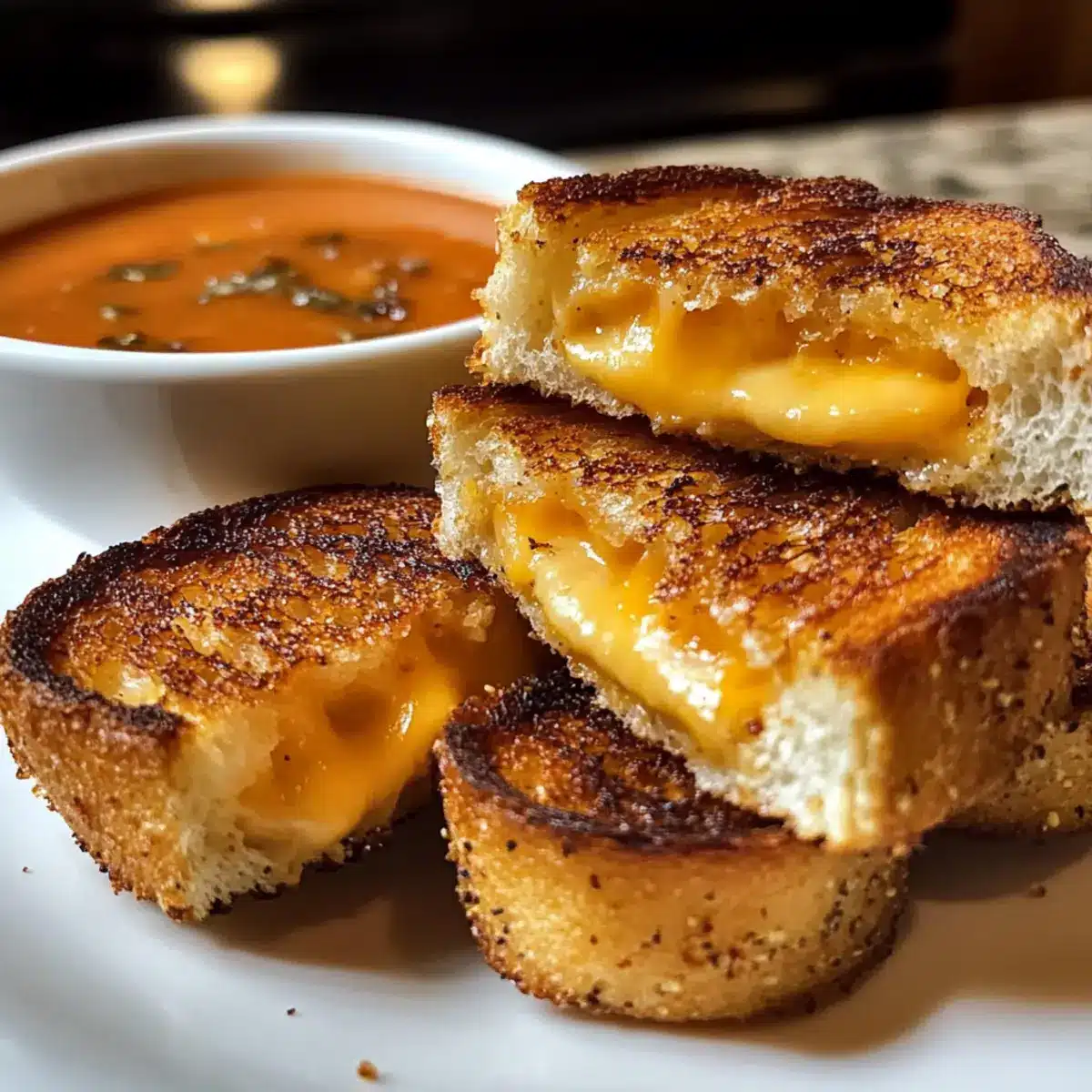 Lass die Sandwiches kurz auf einem Schneidebrett abkühlen, etwa 1 Minute. In der Zwischenzeit kannst du eine Dipp-Suppe vorbereiten, um die Mini Gegrillte Käse Dips zu begleiten. Diese kurze Ruhezeit sorgt dafür, dass der Käse nicht beim Schneiden herausquillt.