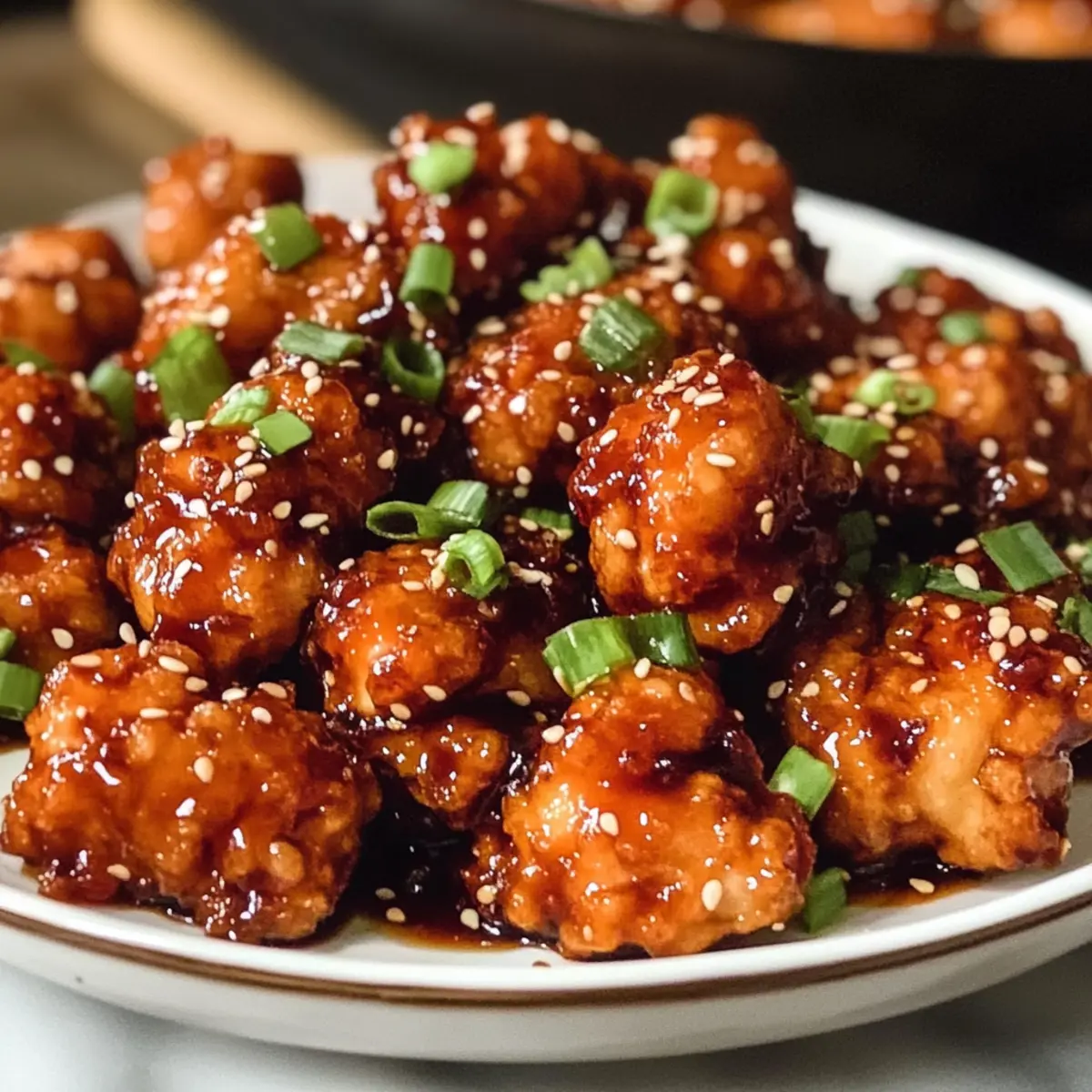 Platziere das Geniale General Tso’s Hähnchen auf einem Teller und serviere es mit gedämpftem Reis oder gebratenem Gemüse. Die knusprigen Hähnchenstücke in der glänzenden Sauce sind nicht nur ein Fest für die Augen, sondern bieten auch ein großartiges Geschmackserlebnis!
