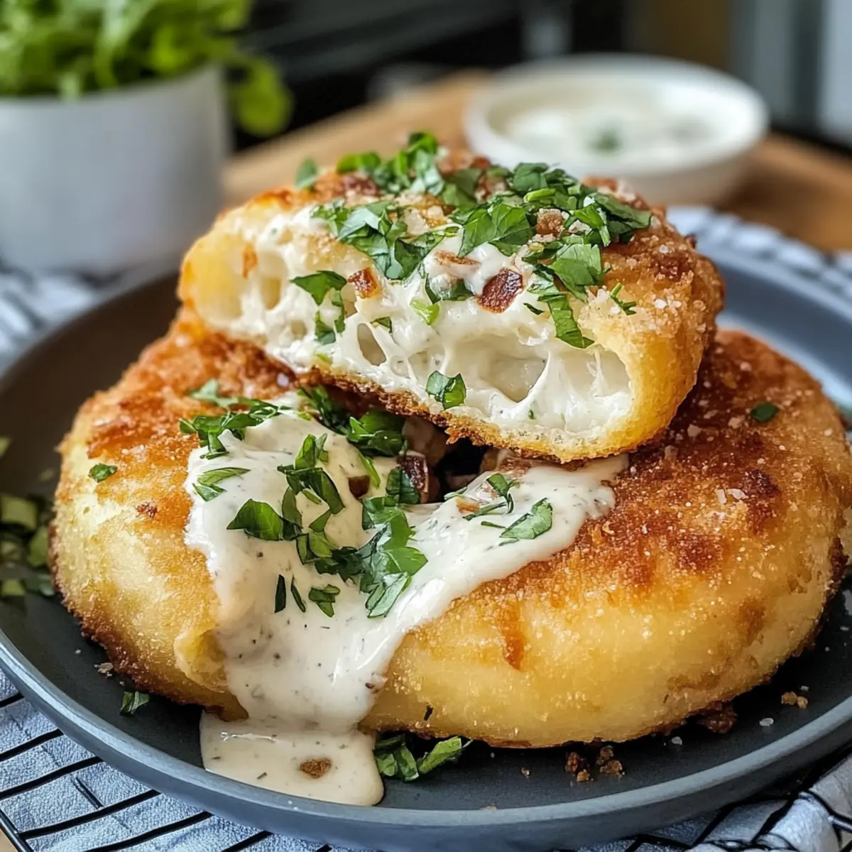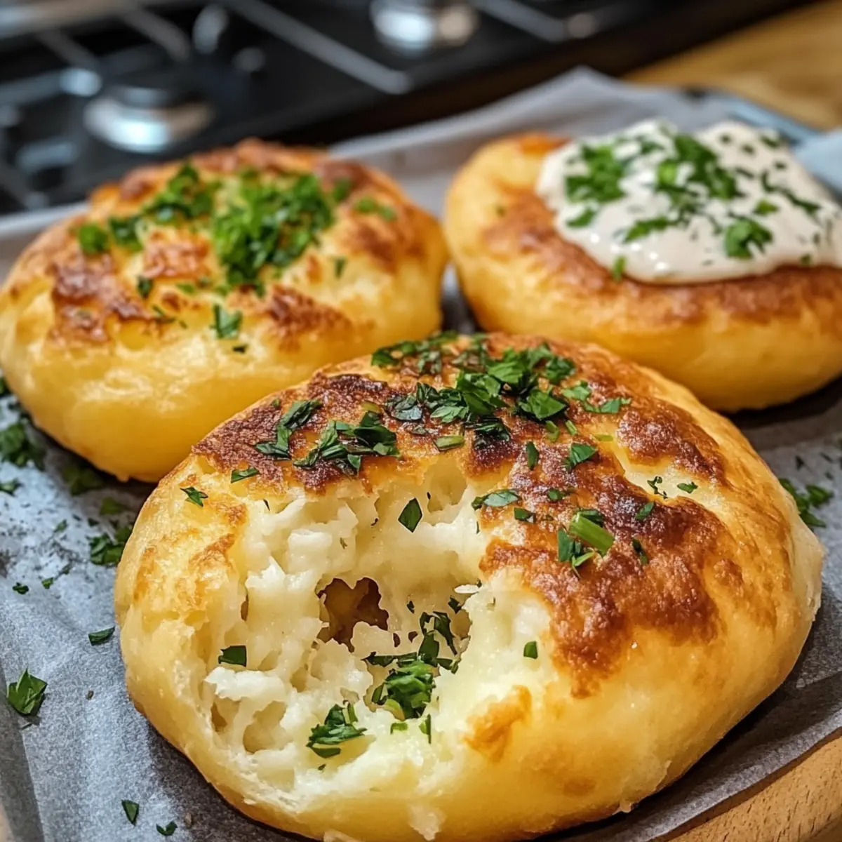 Käsefüllung: Füge deine Lieblingssorte Käse in die Mitte des Teigs, bevor du ihn formst, für eine schmelzende, käsige Überraschung.