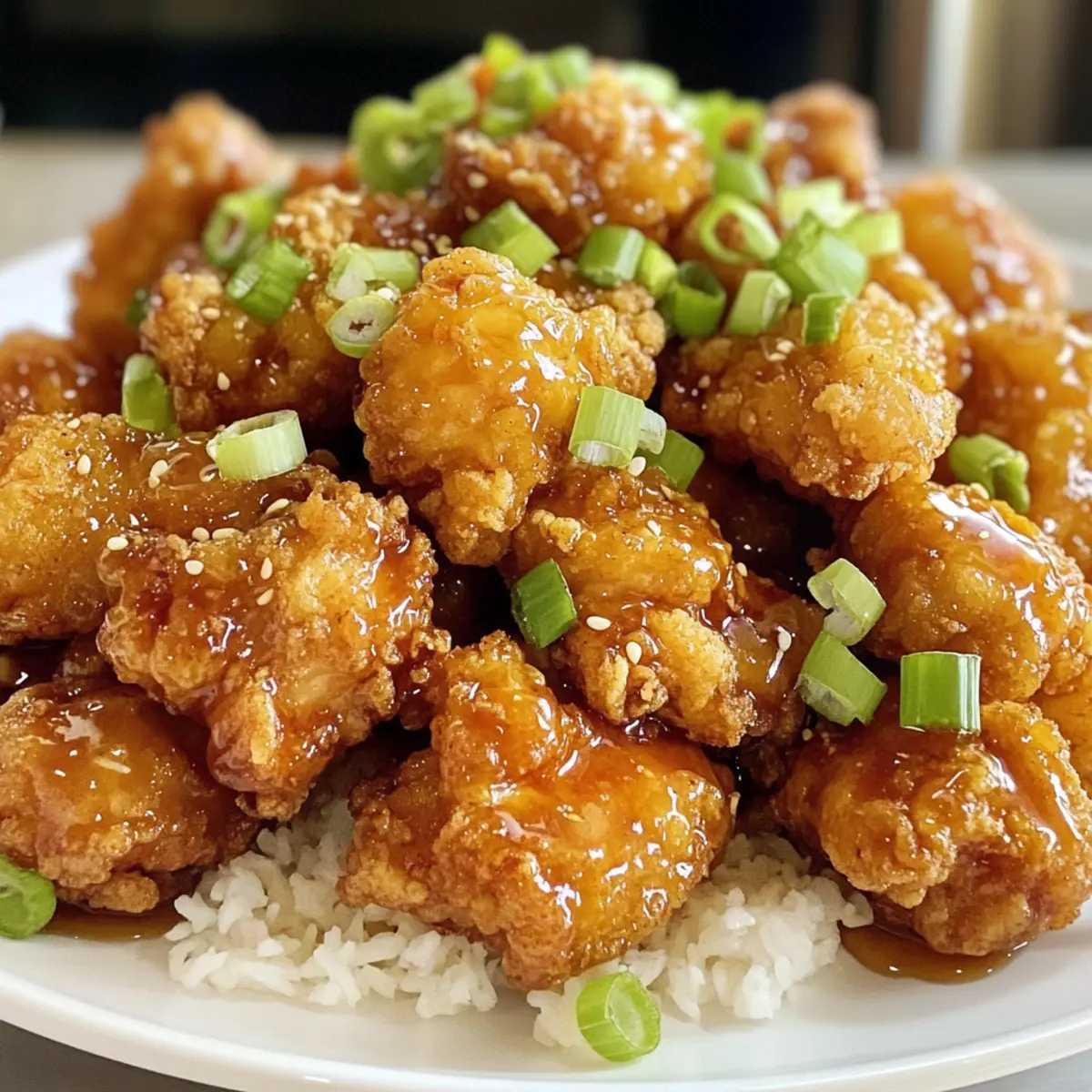 - Serviere das Honig Hühnchen auf einem Bett aus gedämpftem Reis und garniere es mit frisch geschnittenen grünen Zwiebeln.