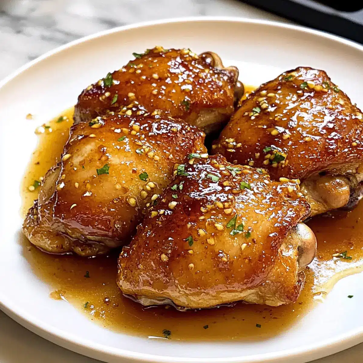 - Die Honig Knoblauch Hähnchenschenkel sofort servieren, am besten mit gedämpftem Reis oder frischem Gemüse.