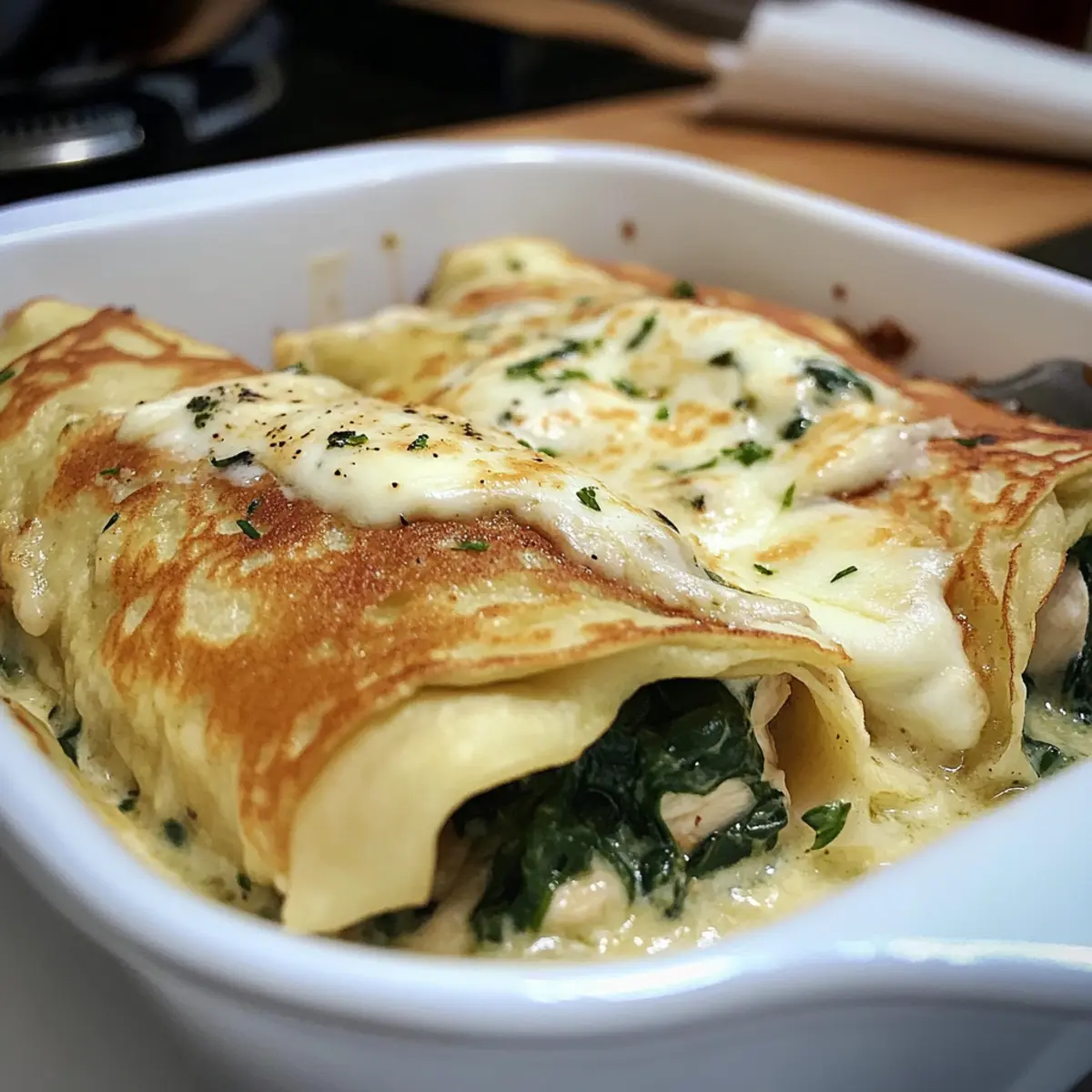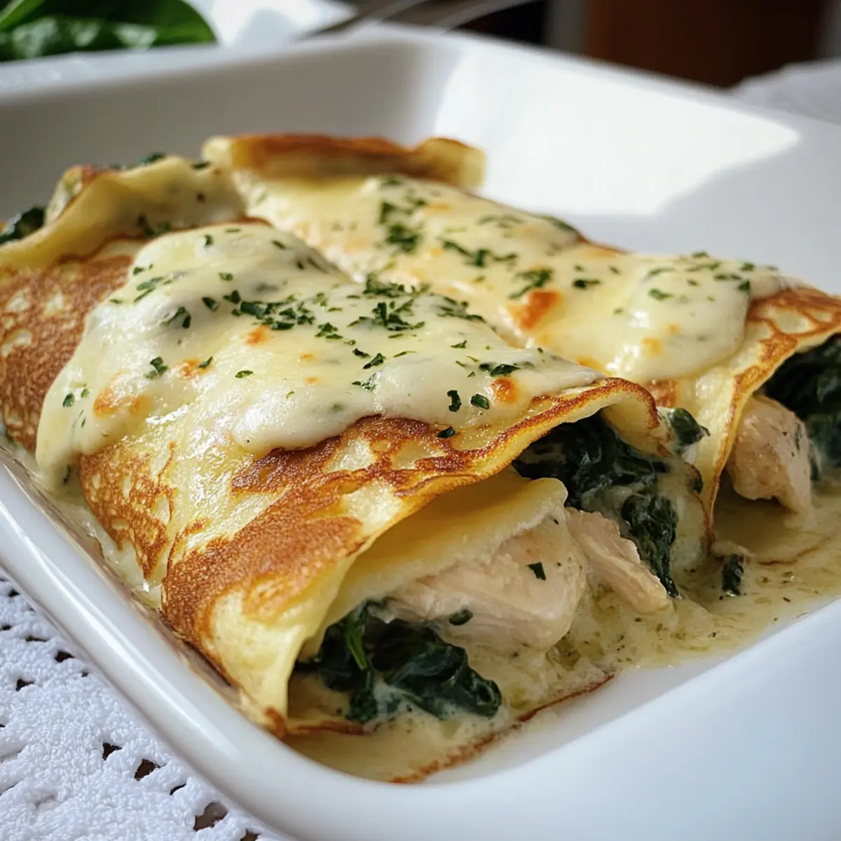 Tauchen Sie ein in die Aromen der Hühnchen Florentine Crepes und genießen Sie jede köstliche Bissen!