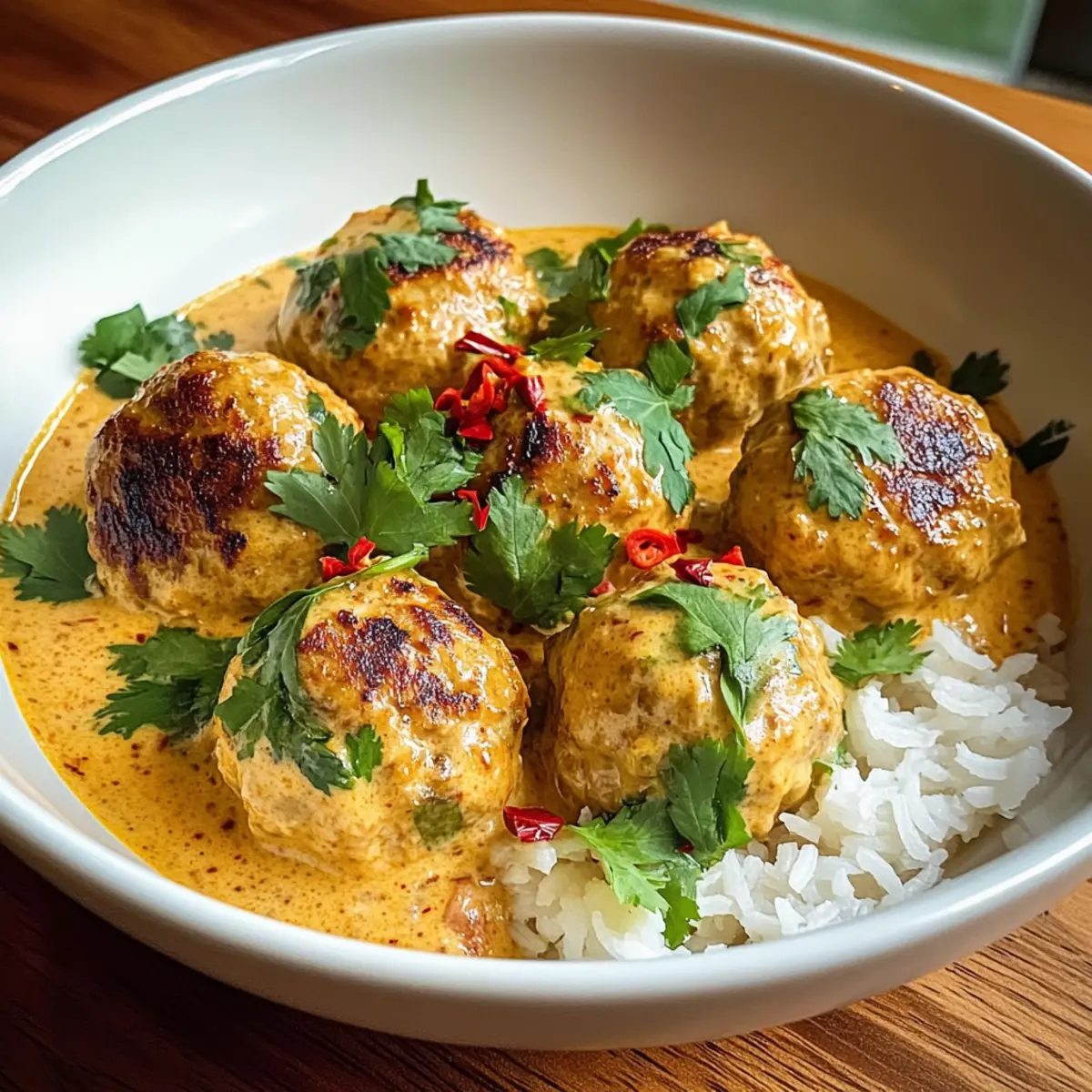 Hühnchenfleischbällchen in Kokosnusssauce