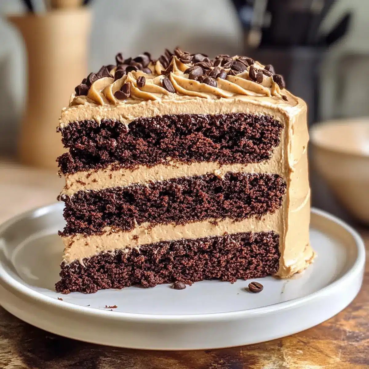Der Kaffee Schokoladenkuchen eignet sich hervorragend für die Vorbereitung, um dir wertvolle Zeit während der hektischen Woche zu sparen! Du kannst die Kuchenschichten bis zu 3 Tage im Voraus backen und sie in luftdichten Behältern im Kühlschrank aufbewahren, um die Frische zu bewahren. Auch die Kaffee-Buttercreme kannst du bis zu 24 Stunden zuvor zubereiten; stelle sicher, dass du sie in einem luftdichten Behälter im Kühlschrank lagerst, um ein Austrocknen zu verhindern. Wenn es Zeit zum Servieren ist, lasse die Kuchen auf Raumtemperatur kommen, schichte die Buttercreme zwischen den Schichten und überziehe den Kuchen mit dem restlichen Frosting für ein einfaches und köstliches Dessert—schnell, effizient und dennoch genau so lecker!