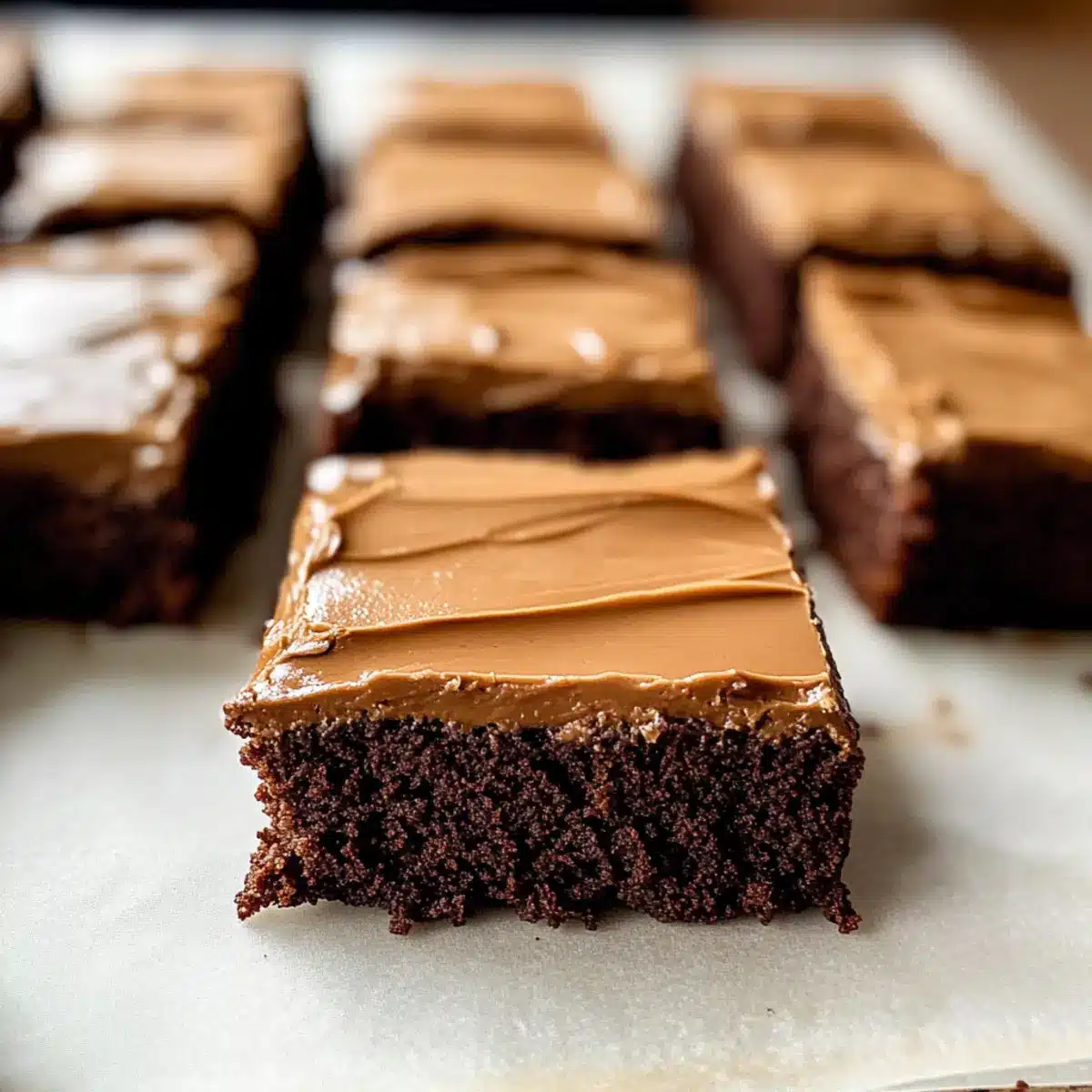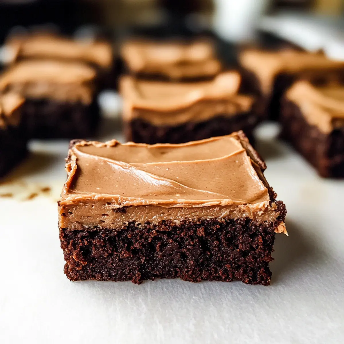 - Frostieren Sie die abgekühlten Brownies gleichmäßig mit dem Frosting.