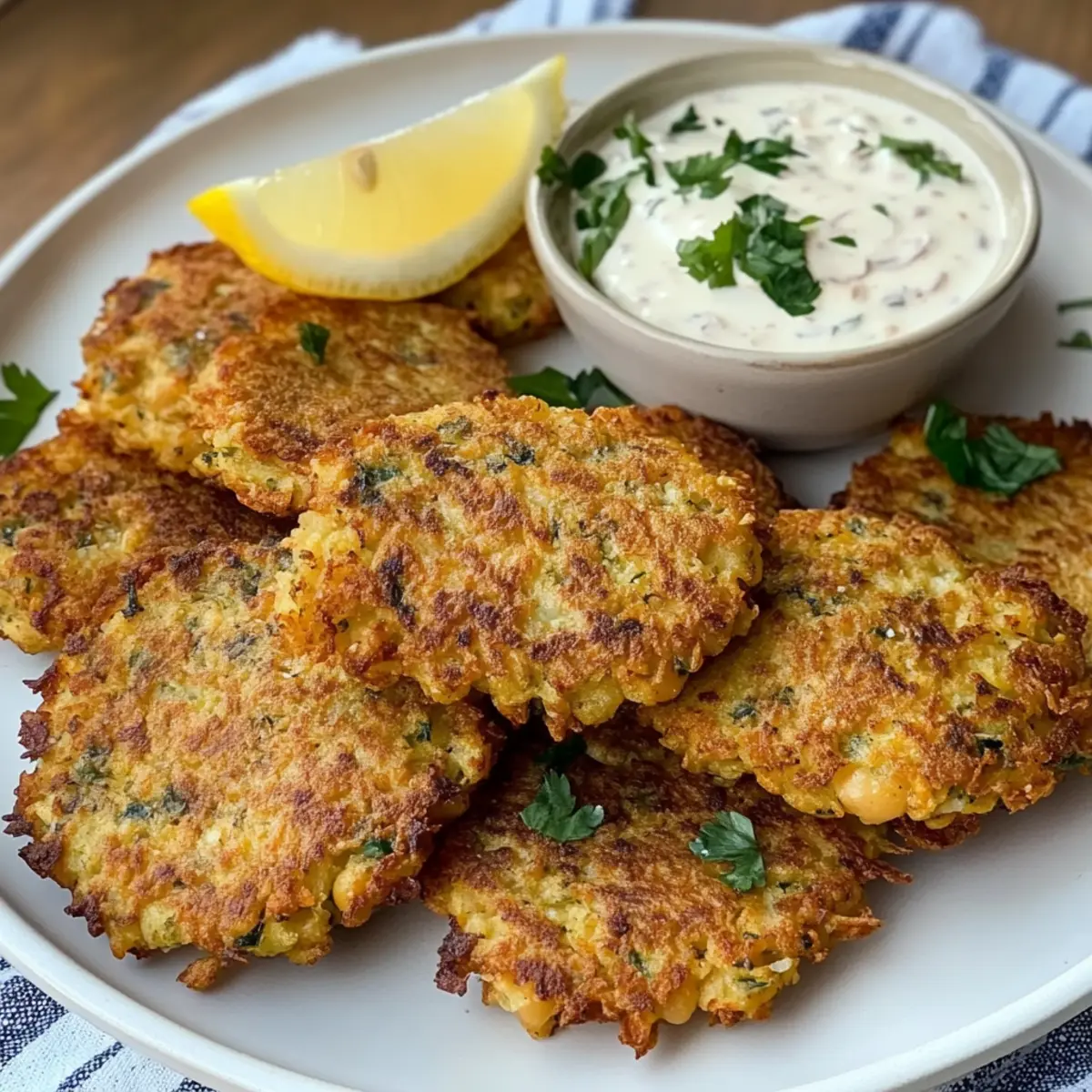 - Frischer Salat: Eine bunte Mischung aus Gurken, Tomaten und Rucola bringt Frische und einen knackigen Kontrast zu den Fritters.