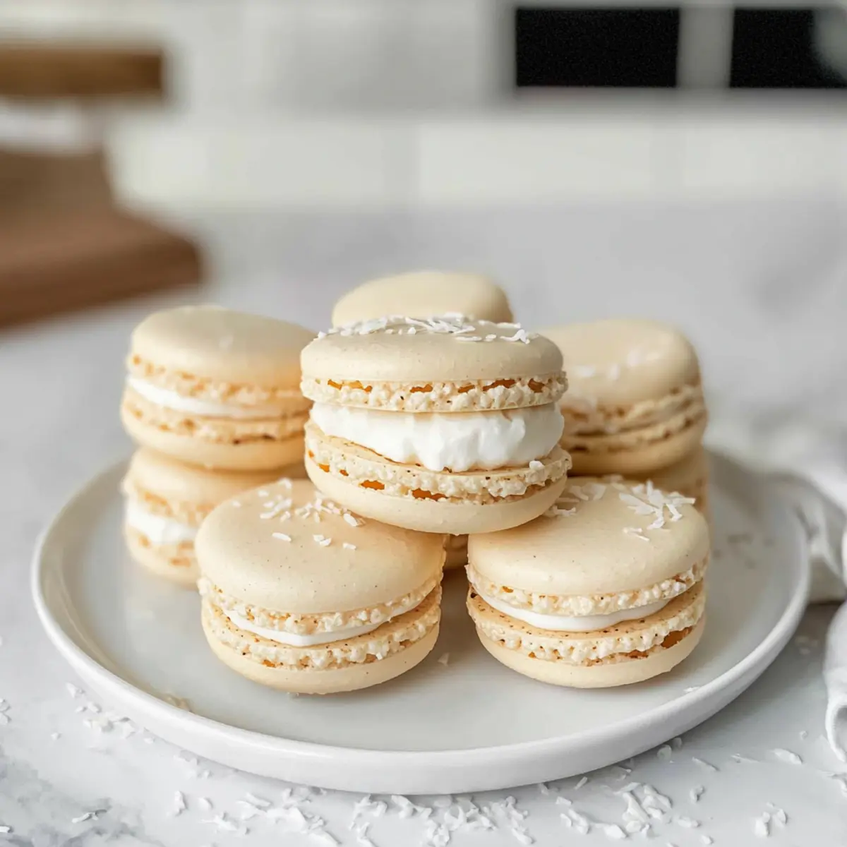 Auftauen: Lassen Sie die gefrorenen Kokosmakronen einfach bei Raumtemperatur auftauen. Füllen Sie sie erst nach dem Auftauen mit der cremigen Kokosganache für die beste Textur.