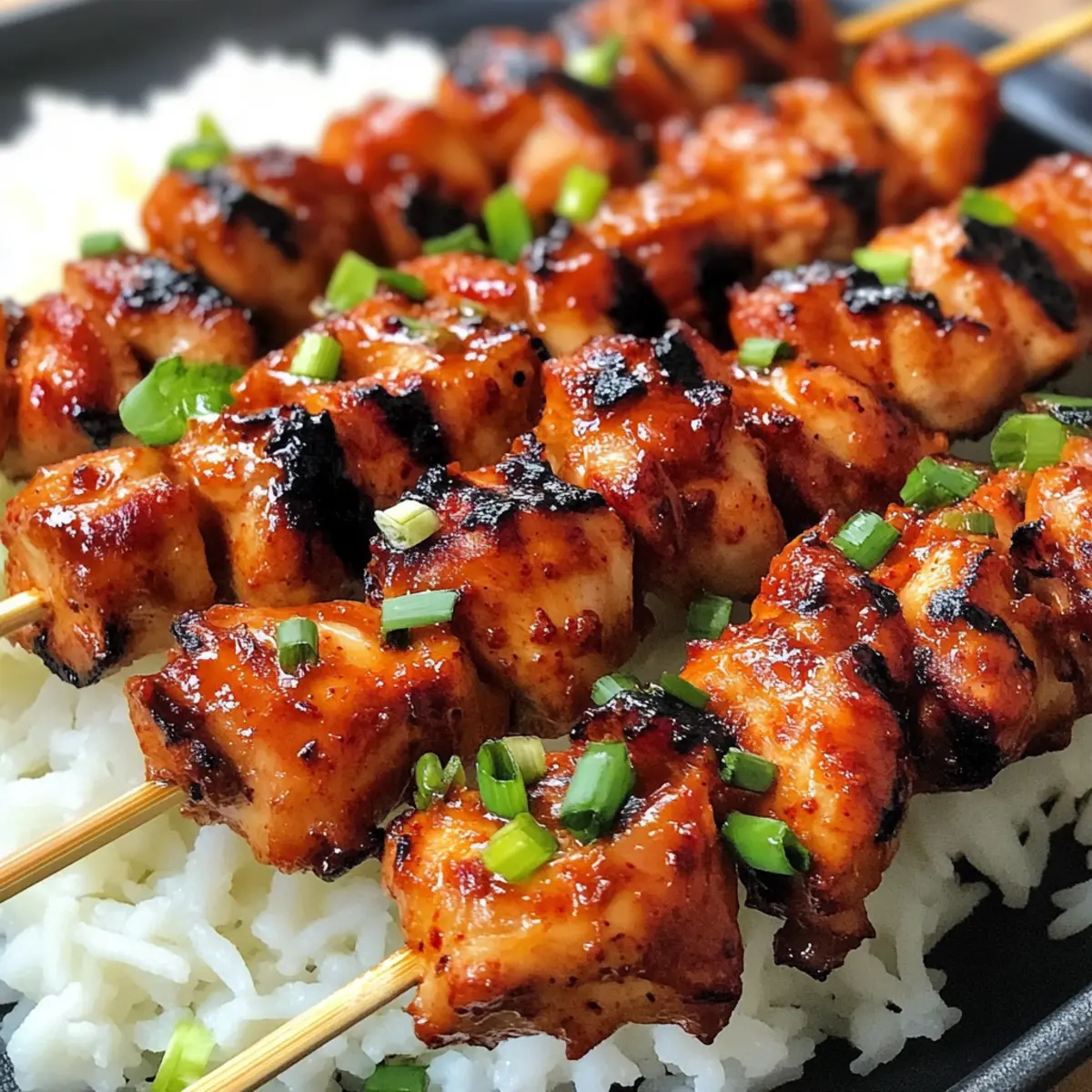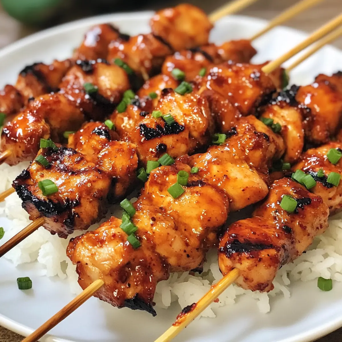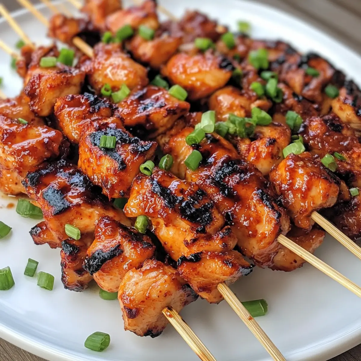 - Servieren und genießen: Spieße vom Grill nehmen, kurz ruhen lassen und mit Frühlingszwiebeln garnieren.