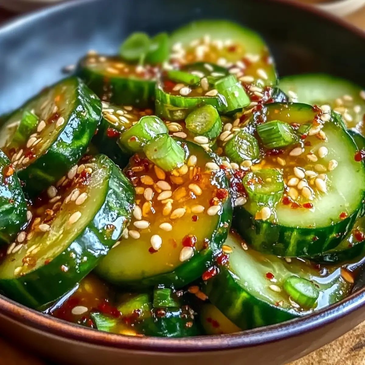Gesunde Wahl: Mit gesunden Fetten aus Sesamöl ist dieser koreanische Gurkensalat eine kalorienbewusste Option.