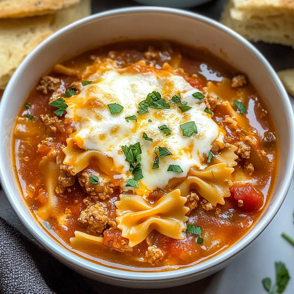 In einem kleinen italienischen Bistro hörte ich neulich einen Stoffwechsel zwischen den Töpfen: „Gerade heute, Filme schauen und Lasagne Suppe genießen!“ Diese einfache, aber herzliche „Lasagne Suppe“ ist mein Geheimtipp für die perfekten Abende, an denen man sich nach etwas Wohlfühlnahrung sehnt. Sie bringt alle klassischen Aromen von Lasagne zusammen und lässt die lästige Schichtarbeit einfach hinter sich. In nur einem Topf zauberst du ein schnelles und köstliches Abendessen, ideal für hektische Wochentage! Außerdem kannst du mit verschiedenen Toppings spielen, um das Gericht ganz nach deinem Geschmack zu gestalten. Wer könnte da widerstehen? Neugierig, wie sich dieser italienische Klassiker in einer warmen Suppe entfaltet? Lass uns gleich loslegen!
