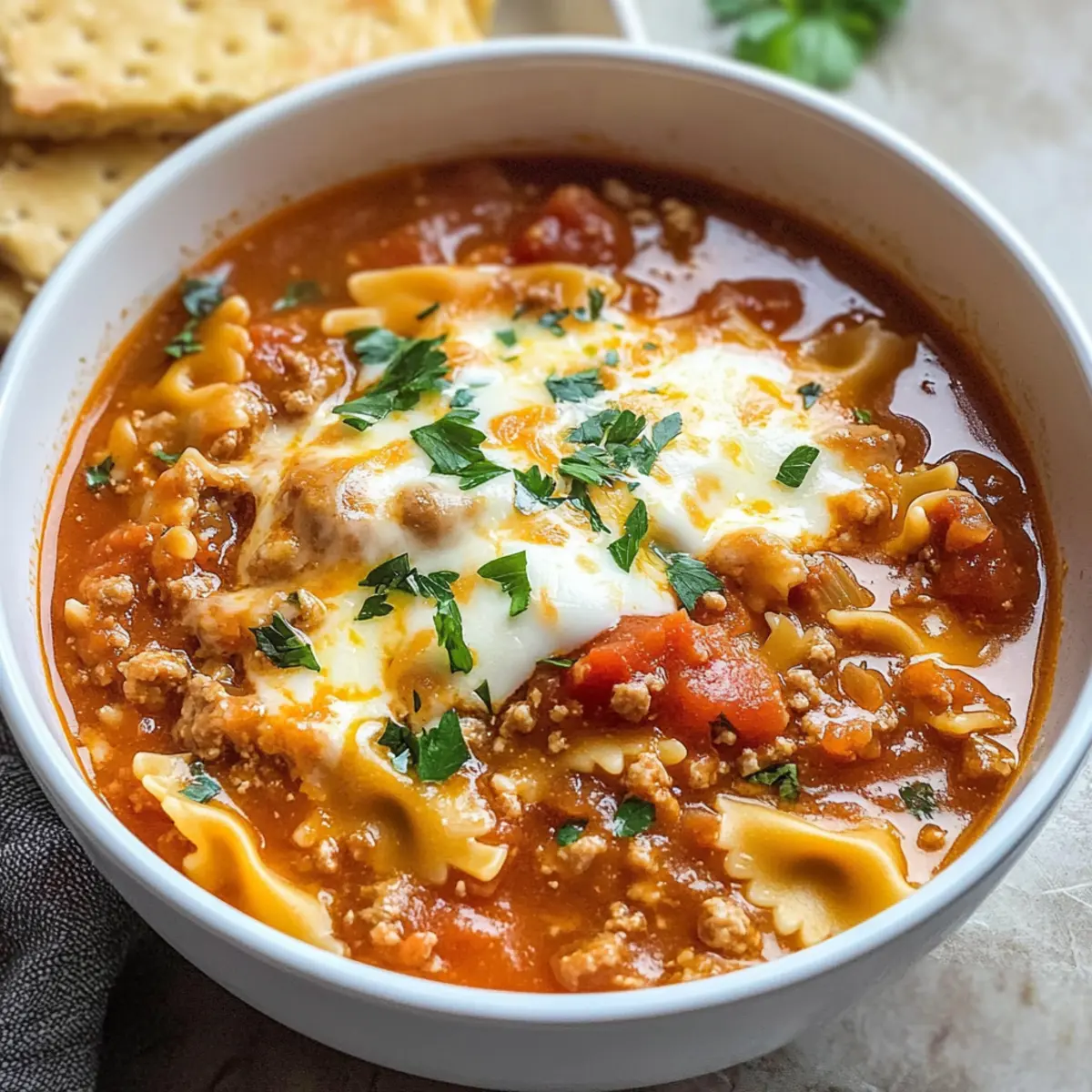 Herzhafte Lasagne Suppe für schnelle Abende