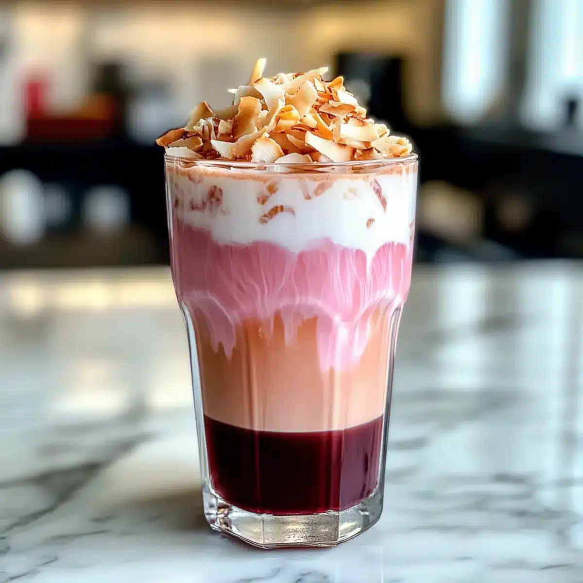 Schritt-für-Schritt-Anleitung für Rosa Kokosnuss Iced Latte
