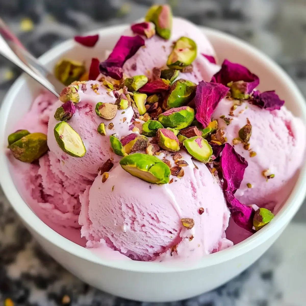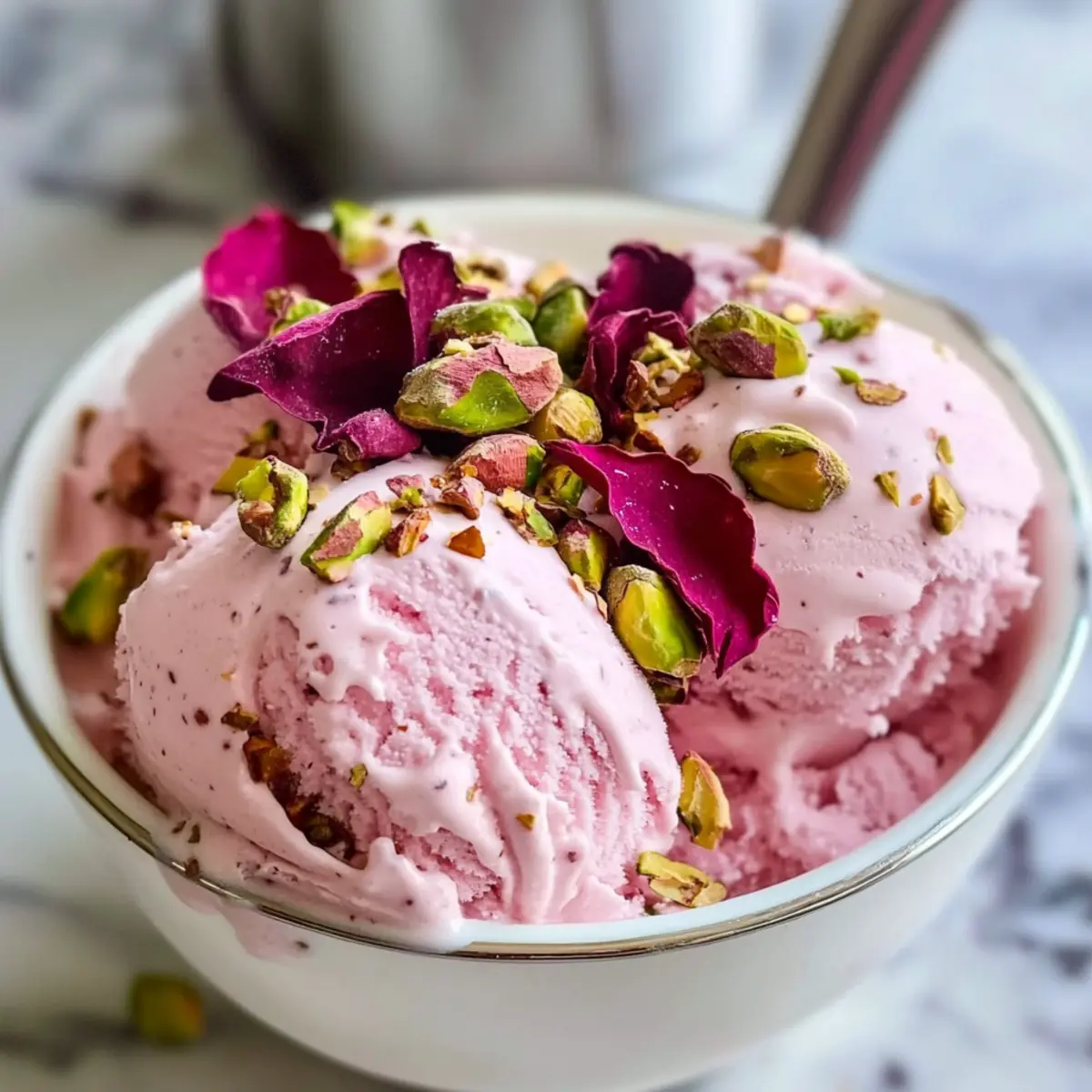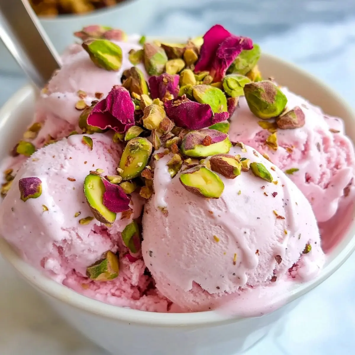 Rosen-Eiscreme mit Pistazien zaubern Genuss