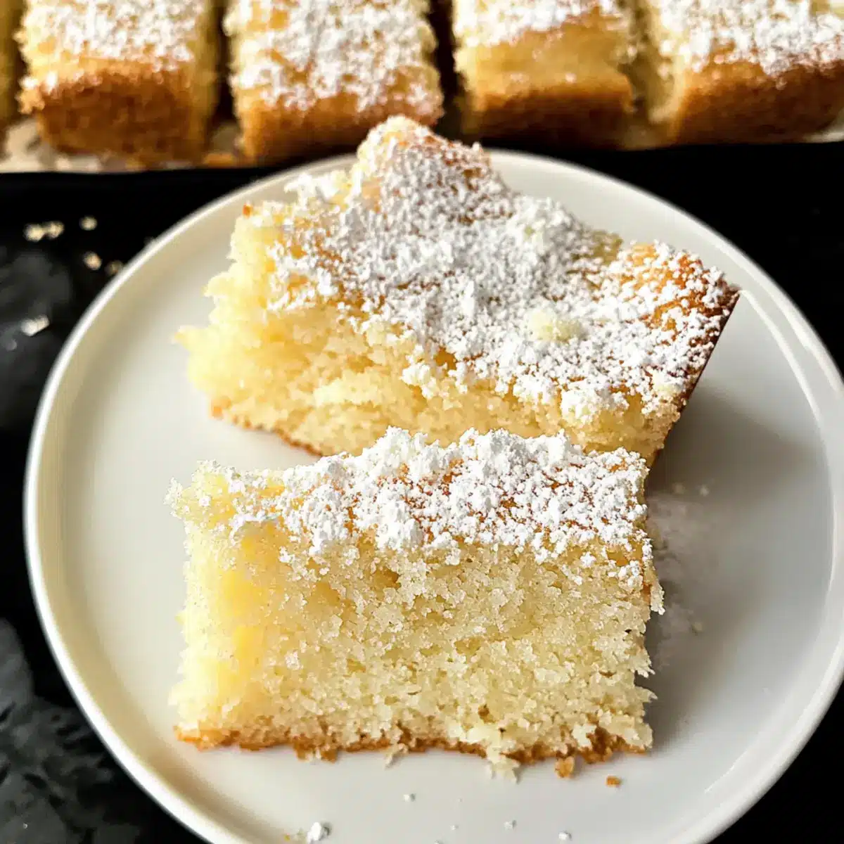 Schneide den Snackkuchen in Stücke und serviere ihn nach Wunsch. Wenn du möchtest, kannst du ihn leicht mit Puderzucker bestäuben, um ihm eine besondere Note zu verleihen. Dieser Snackkuchen mit Kokosmilch ist einfach himmlisch und perfekt für jede Gelegenheit!