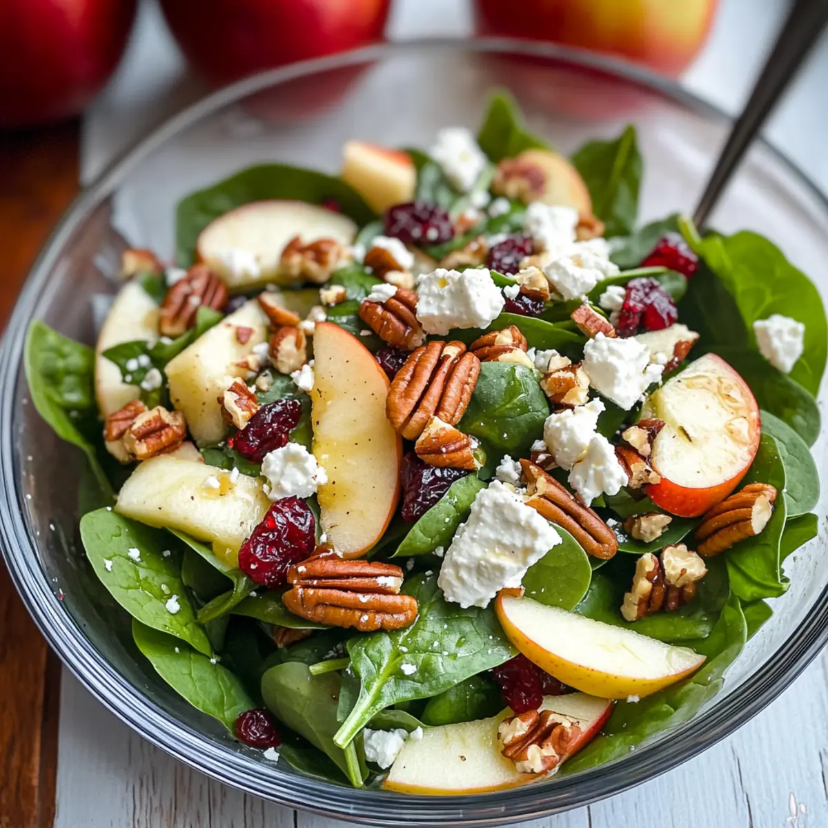 Gesunde Wahl: Dieser Salat ist nicht nur lecker, sondern auch nährstoffreich. Frischer Spinat liefert wertvolle Vitamine und Mineralien, während die Äpfel für eine süße Note sorgen.