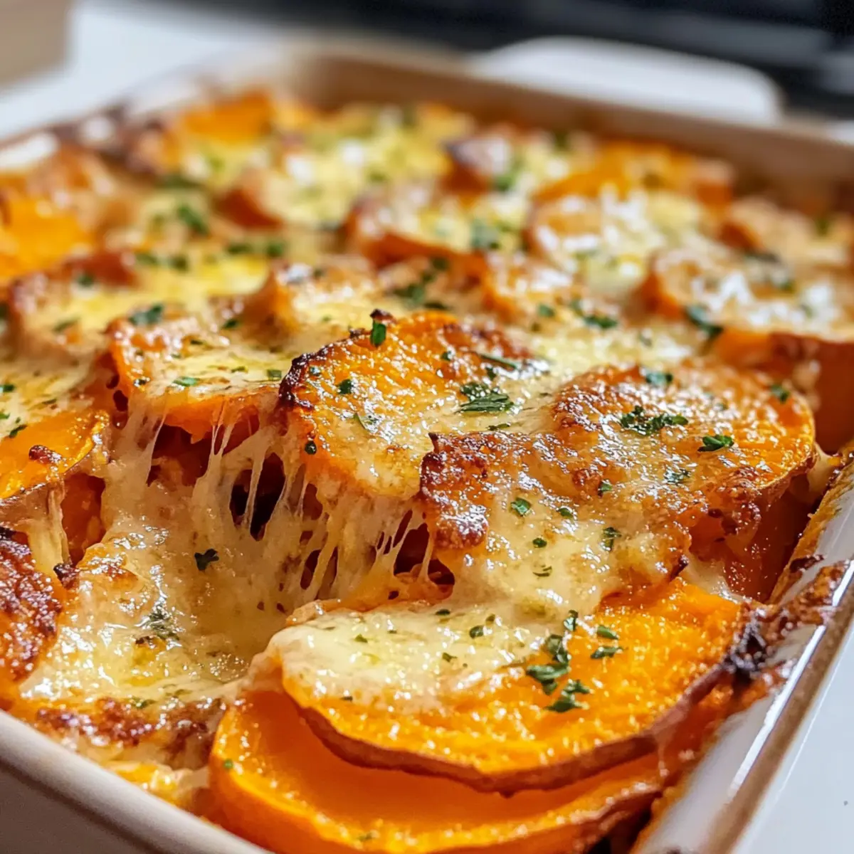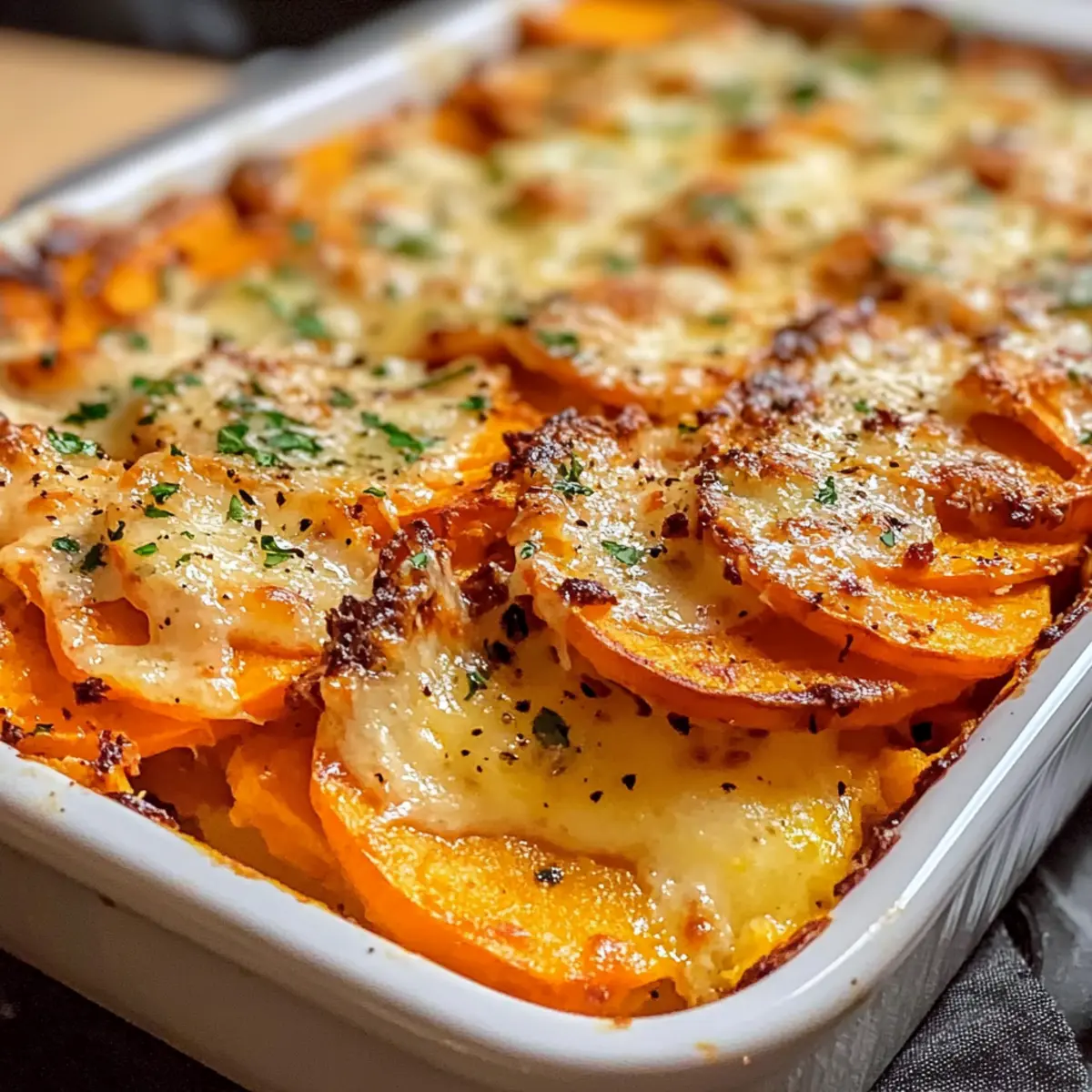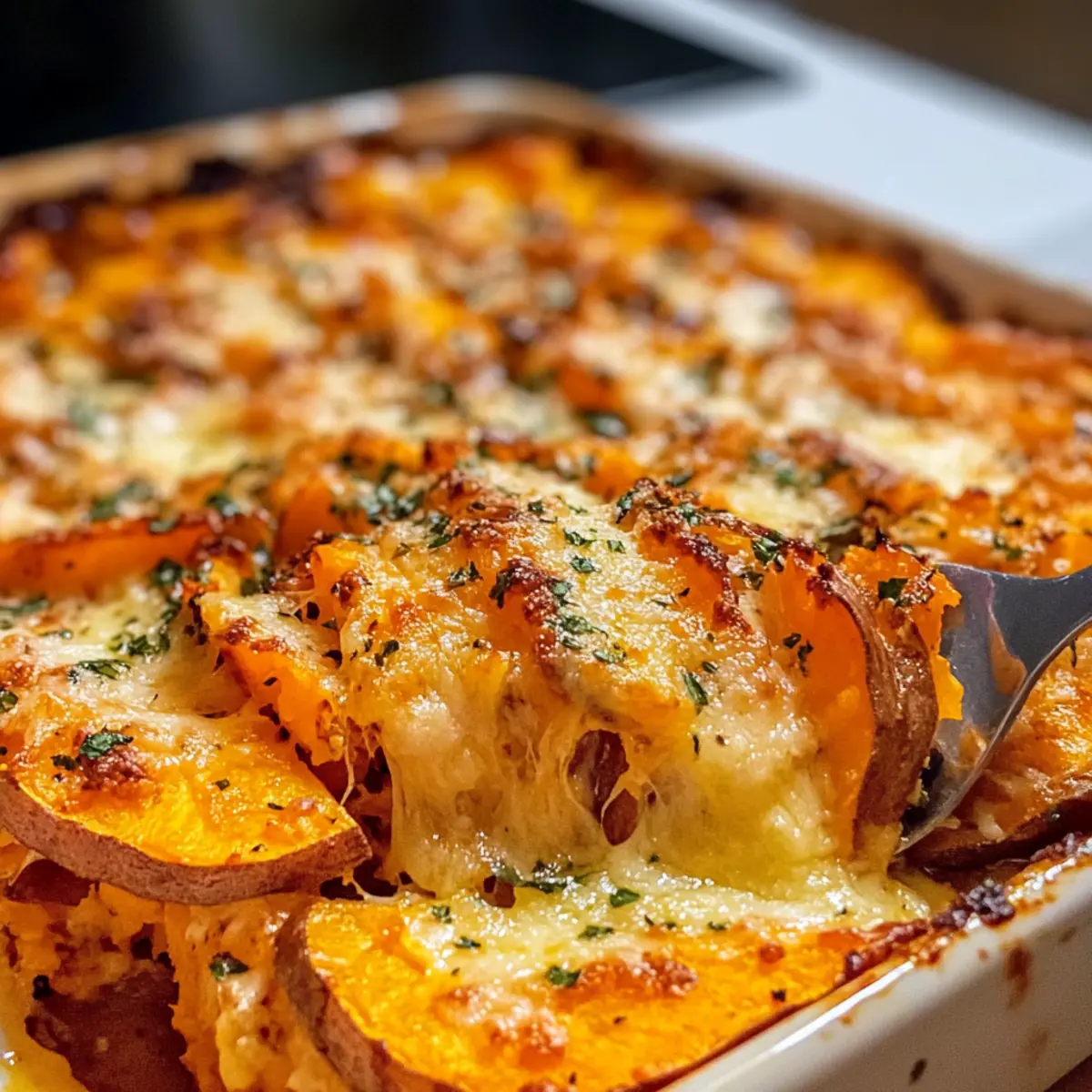 Süßkartoffelauflauf mit Knoblauchbutter genießen