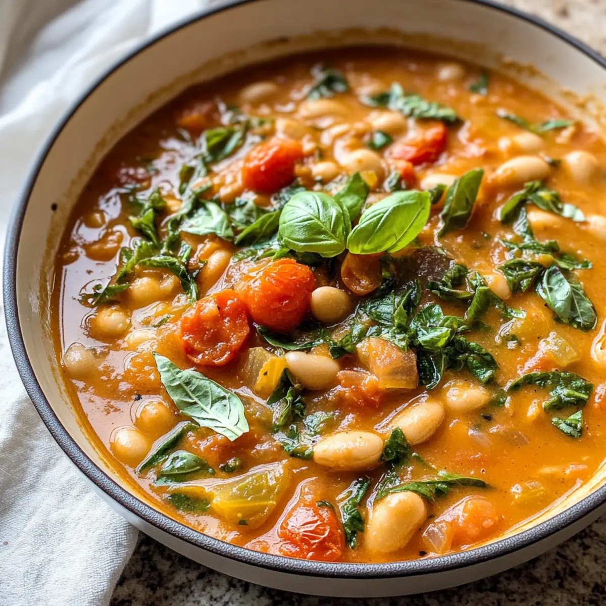 Die ersten kalten Herbsttage haben mich in die Küche gezogen. Während ich durch meine Vorräte stöberte, entdeckte ich eine Dose weiße Bohnen und frische, saftige Tomaten – der perfekte Start für einen Tomaten-Weißbohnen-Eintopf, der nicht nur vegan, sondern auch glutenfrei ist! Diese cremige und wohltuende Suppe ist schnell zubereitet und bringt nicht nur Wärme in den Bauch, sondern auch Freude ins Herz. In nur 25 Minuten könnt ihr diese köstliche, pflanzenbasierte Mahlzeit auf den Tisch bringen – perfekt für entspannte Mittagessen oder gemütliche Abendessen nach einem langen Tag. Wer könnte da schon widerstehen? Seid ihr bereit, die Aromen gemeinsam zu entdecken und ein bisschen Comfort Food in euer Leben zu bringen?