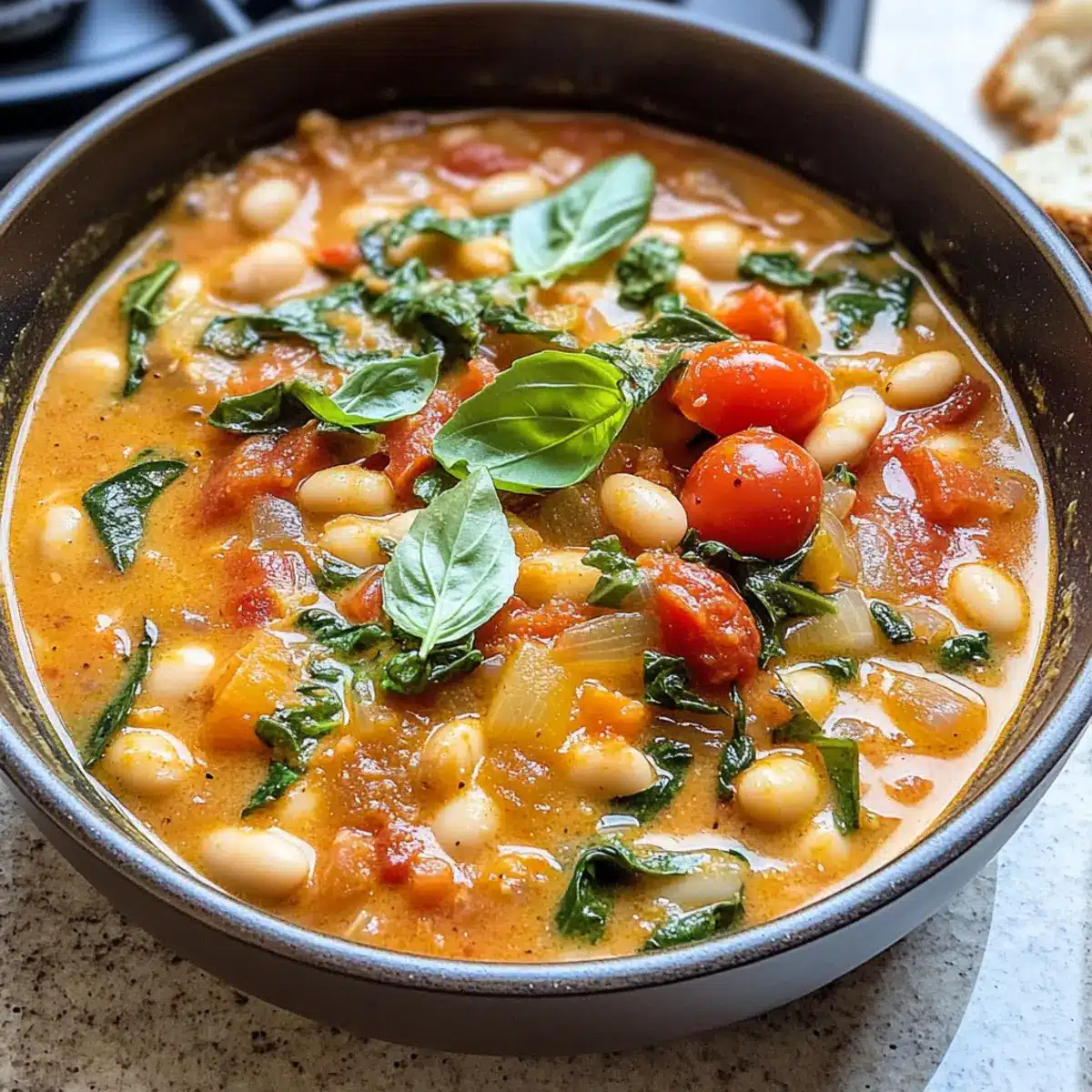 Macht euch bereit für ein angenehmes Kocherlebnis mit diesem köstlichen Tomaten-Weißbohnen-Eintopf!