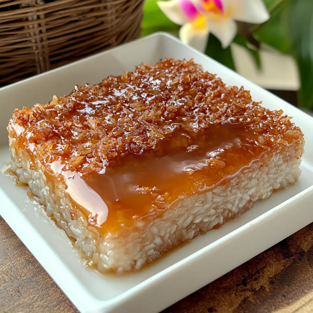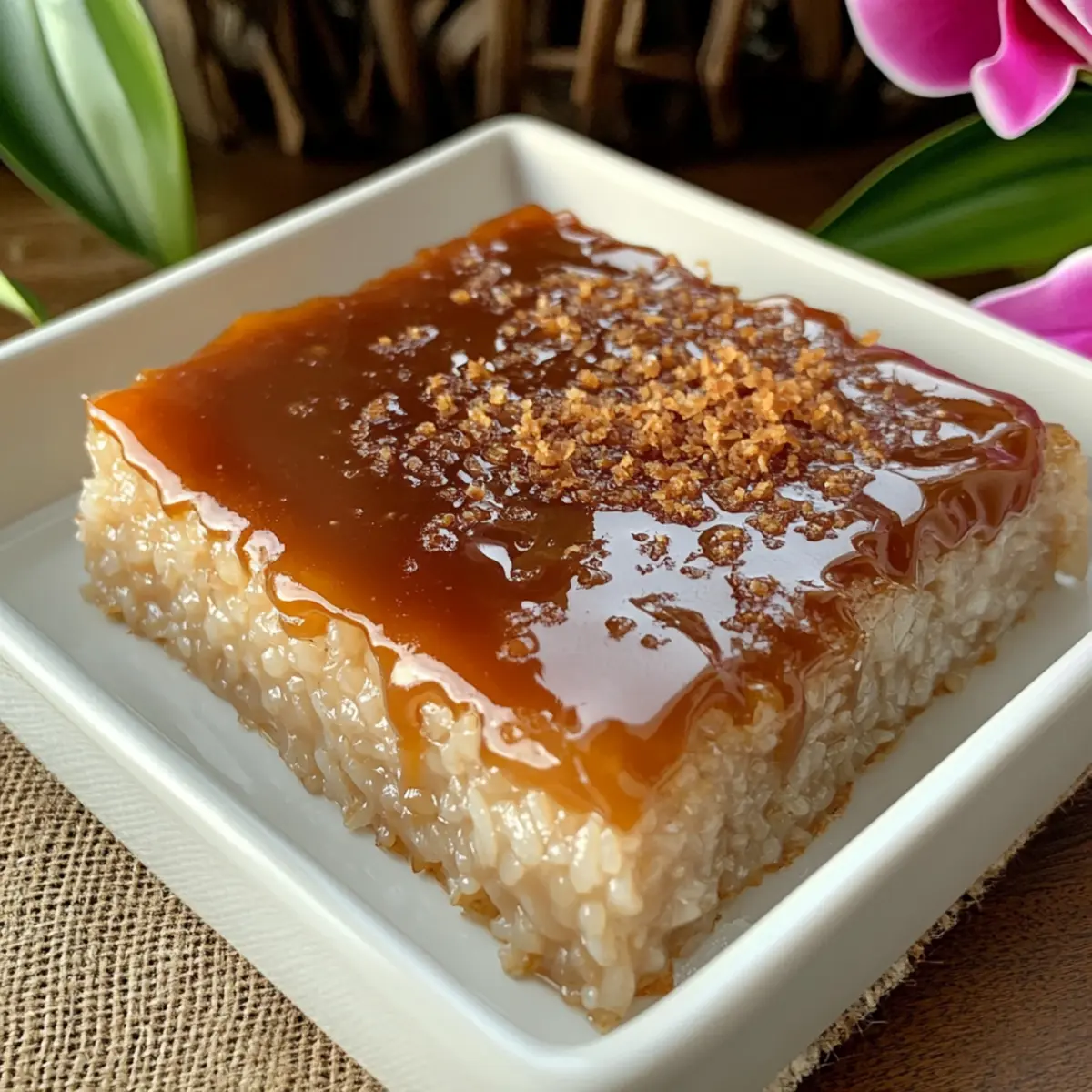 Genieße die süße Köstlichkeit von Biko, ergänzt durch perfekte Beilagen, die das Geschmackserlebnis noch bereichern.