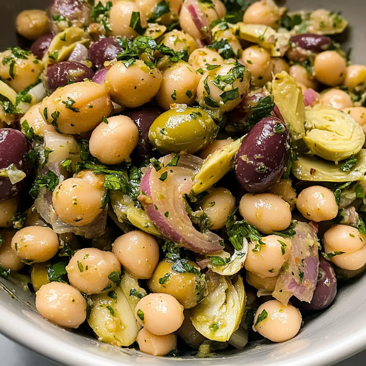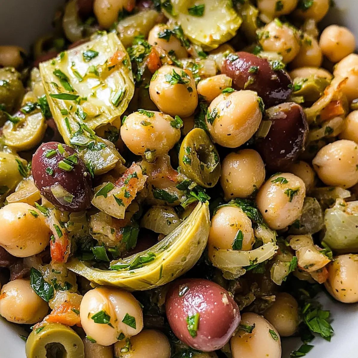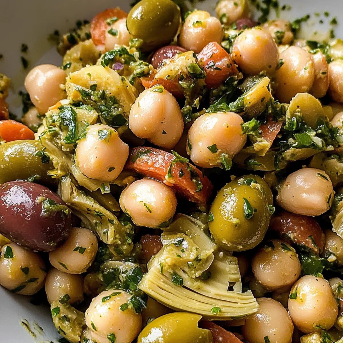 Achte darauf, dass die Butterbohnen und Kichererbsen eine glatte und cremige Textur haben; vermeide Dosen mit aufgedunsenen oder stark beschädigten Bohnen. Die Castelvetrano-Oliven sollten glänzend und ohne dunkle Flecken sein. Frische Zwiebeln sind am besten, wenn sie fest und knackig sind.