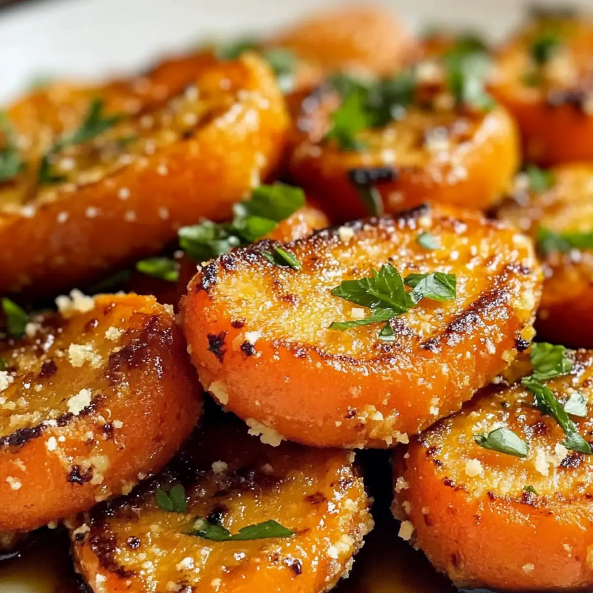 - Glasur und Garnitur: Vermenge Honig und Balsamico-Essig, träufle die Glasur über die Karotten und streue frische Kräuter sowie Parmesan darüber.