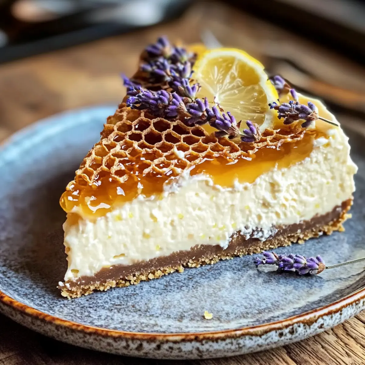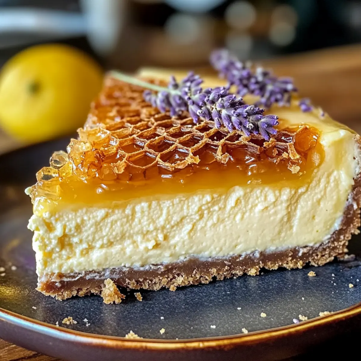 - Dekorieren Sie den Käsekuchen mit Honigwaben und Lavendelblüten vor dem Servieren.